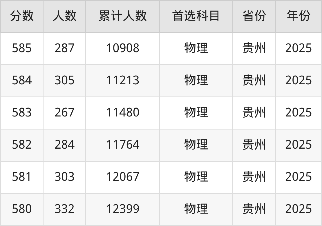 温馨提示:全国各省录取分数线不相同,本文以贵州省为例,为大家带来2025年录取分数线位于580到600分的理科大学名单汇总,并附上该分数段对应的位次排名区间,供查阅。