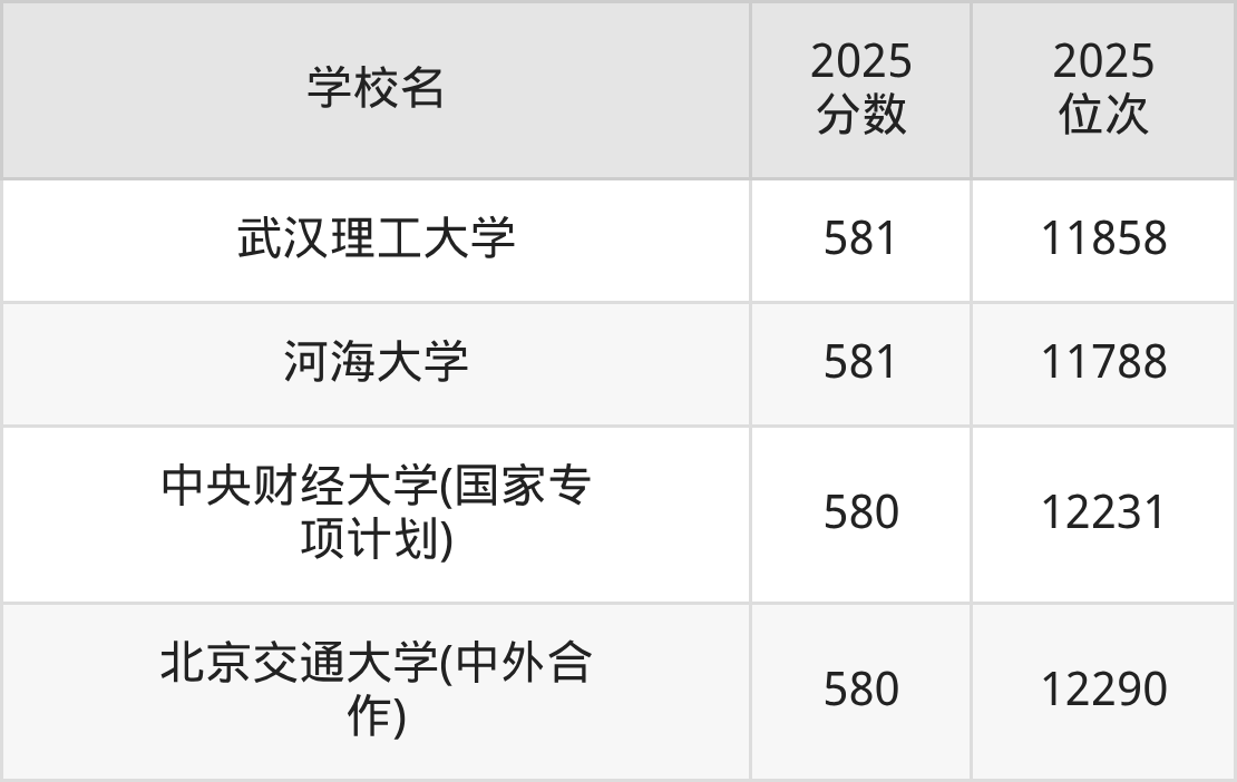 | 学校名 | 2025 分数 | 2025 位次 |