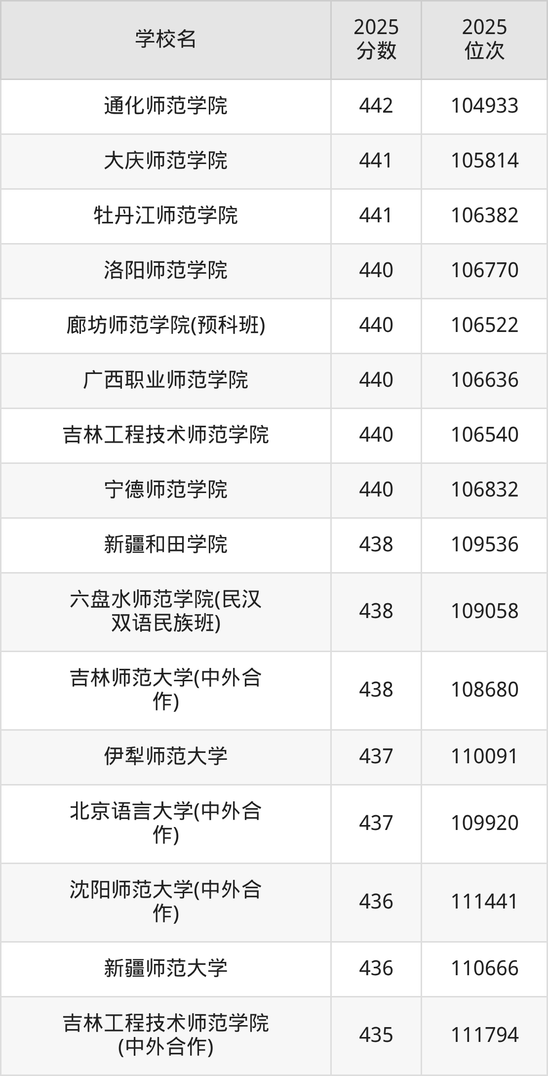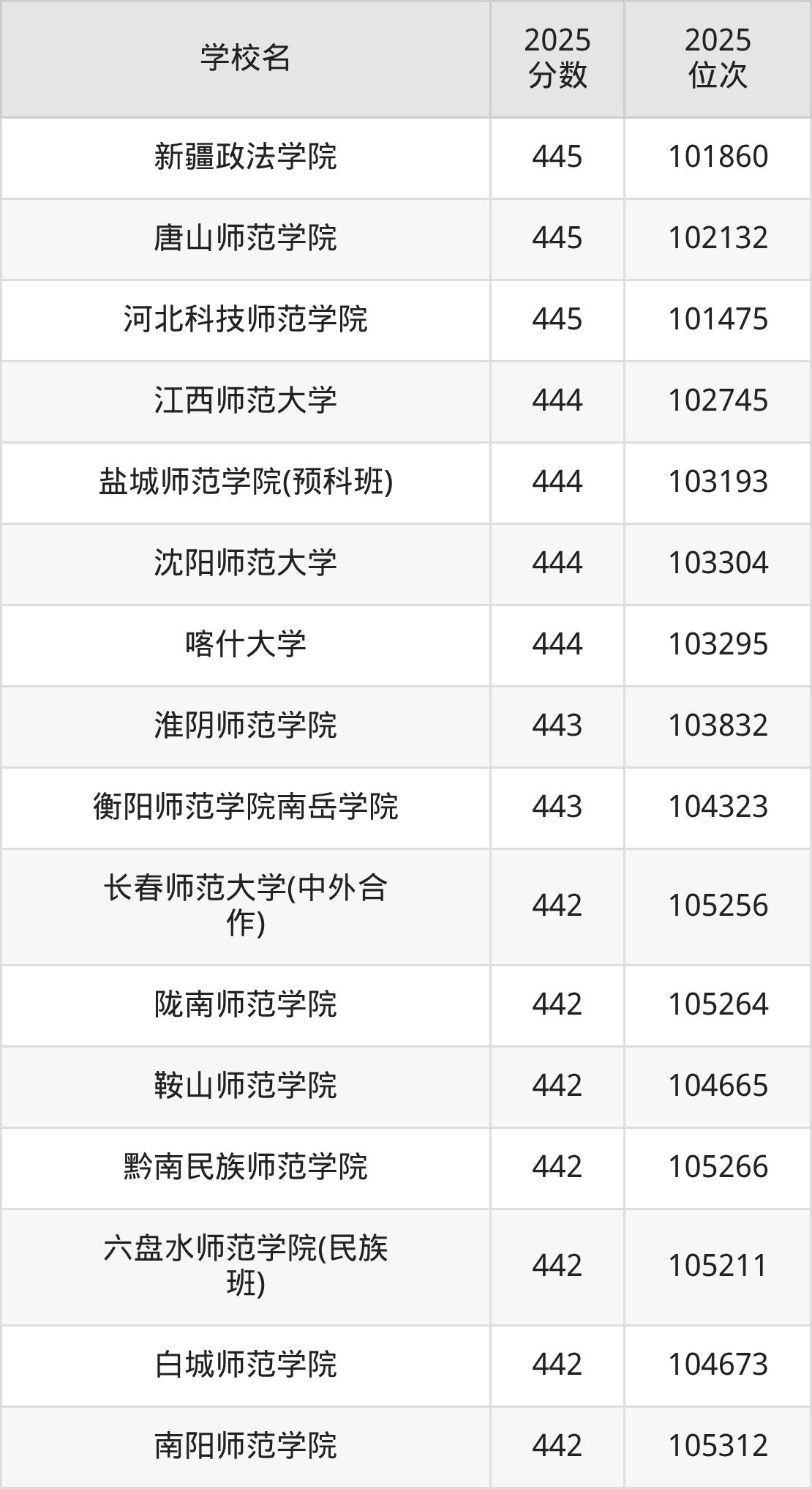 录取分数线的波动较大,下面圆梦小编为大家带来了2025年410到450分对应的位次排名区间,建议2026年位于该位次范围内的考生参考上文所整理的学校(本文仅针对贵州省)。
