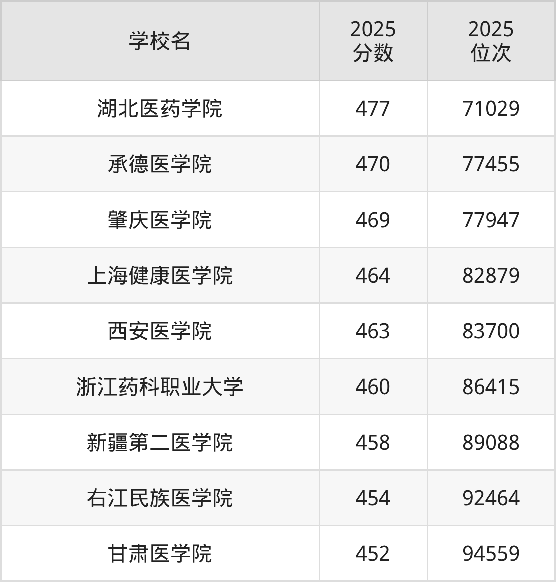 温馨提示:全国各省录取分数线不相同,本文以贵州省为例,为大家带来2025年录取分数线位于450到480分的二本医学院名单汇总,并附上该分数段对应的位次排名区间,供查阅。