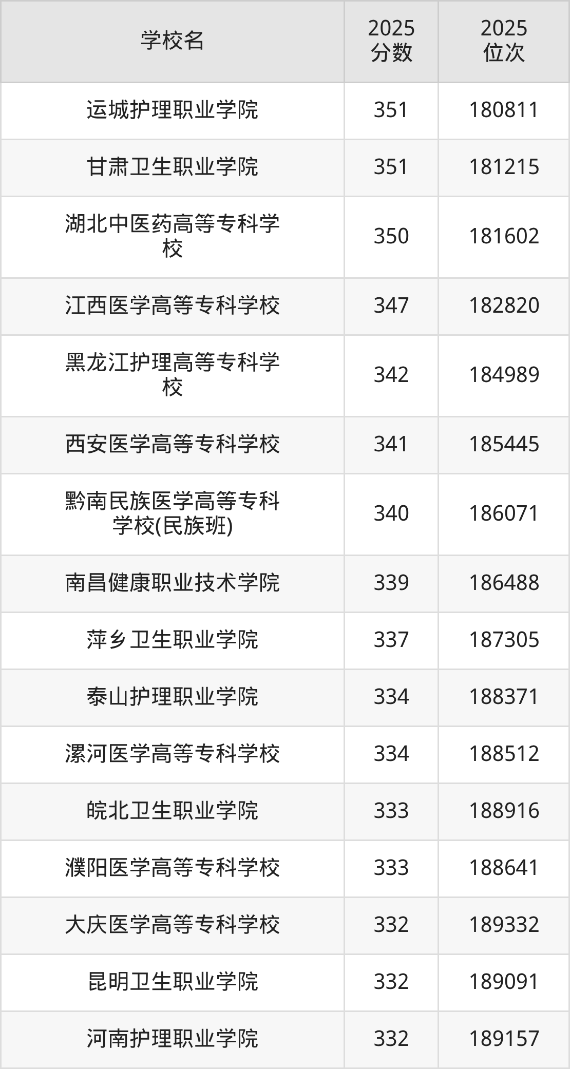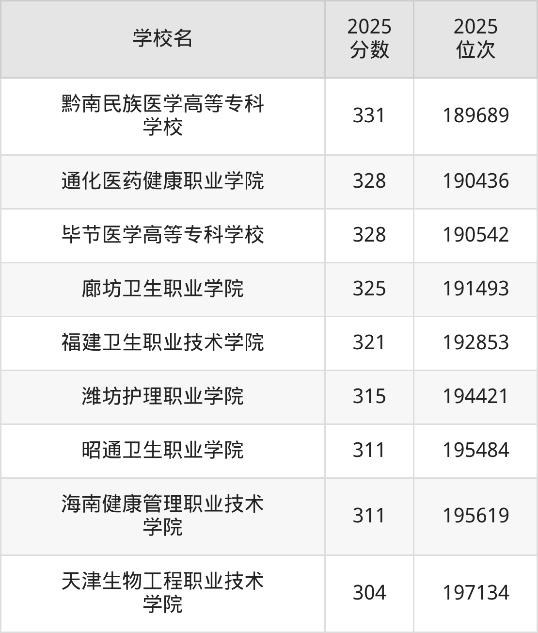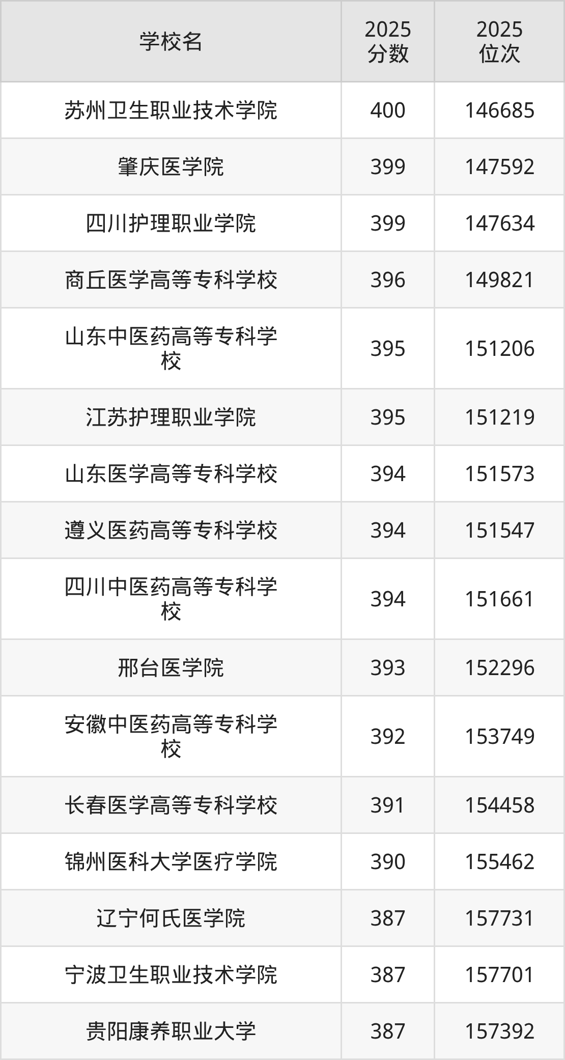 温馨提示:全国各省录取分数线不相同,本文以贵州省为例,为大家带来2025年录取分数线位于300到400分的医科大学名单汇总,并附上该分数段对应的位次排名区间,供查阅。