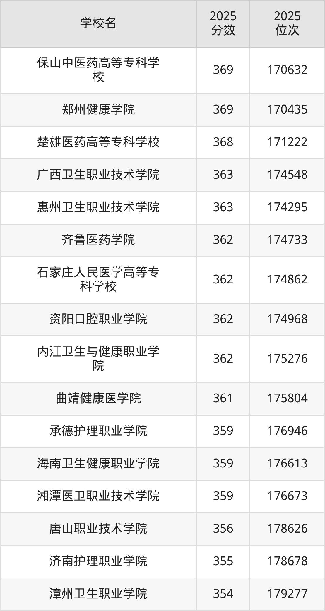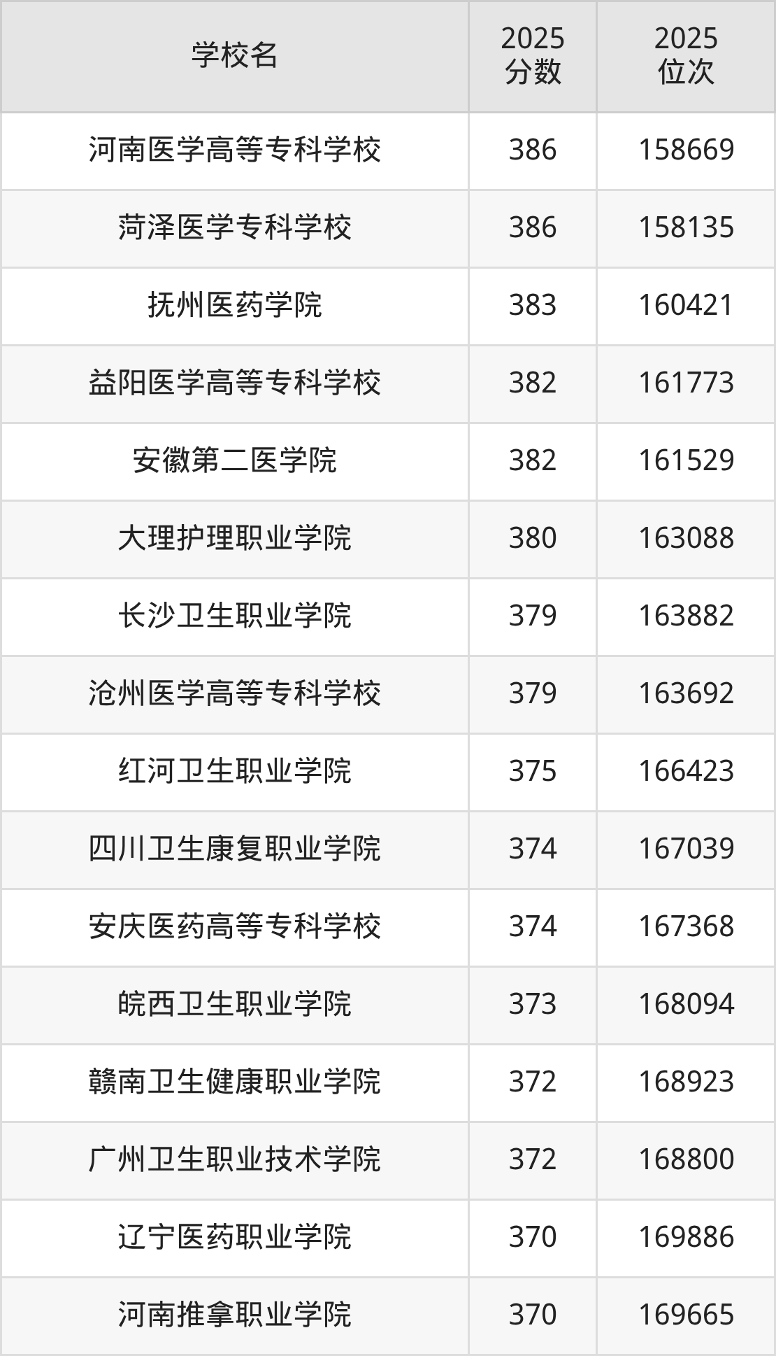 | 廊坊卫生职业学院 | 384 | 69128 |