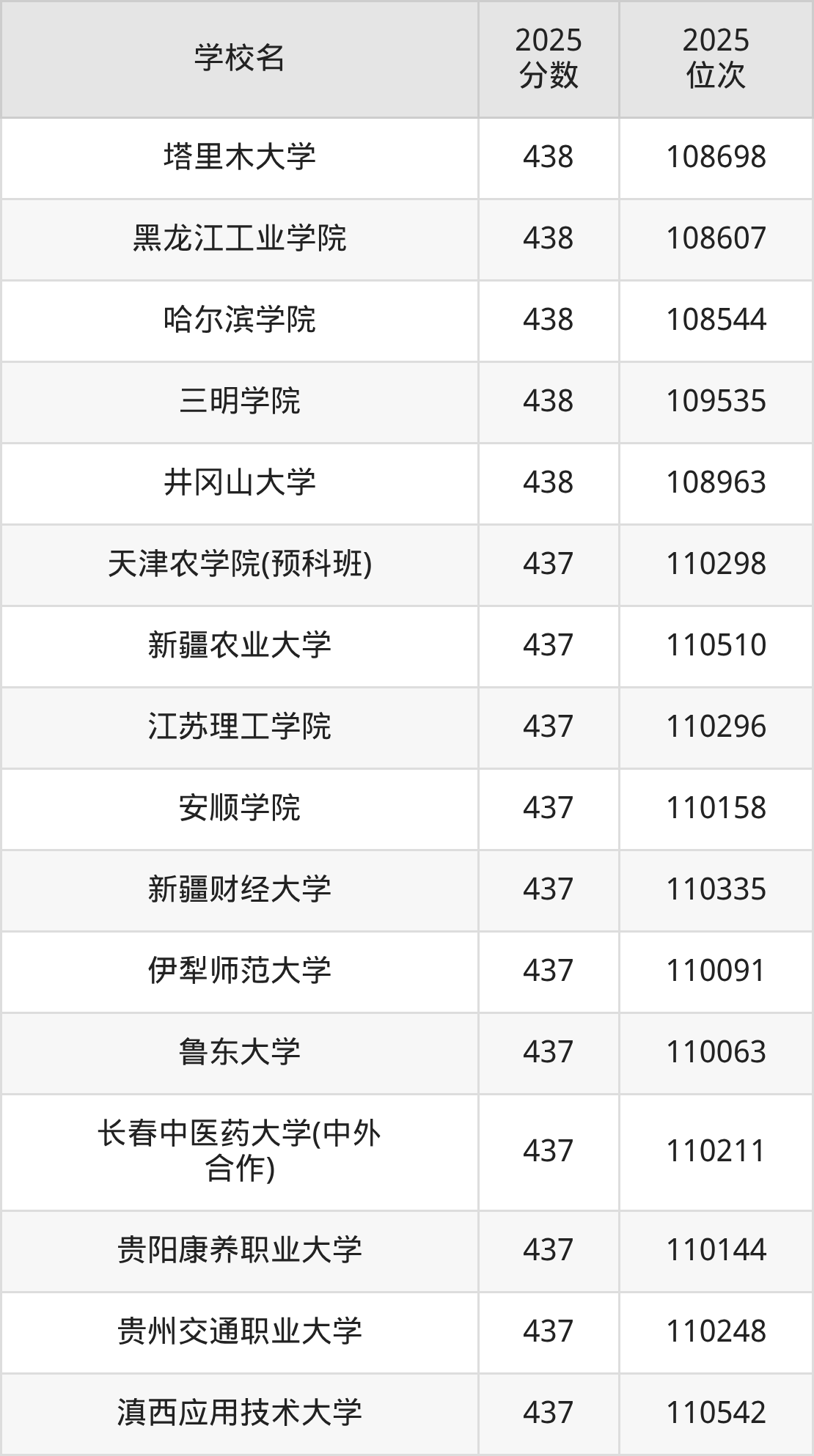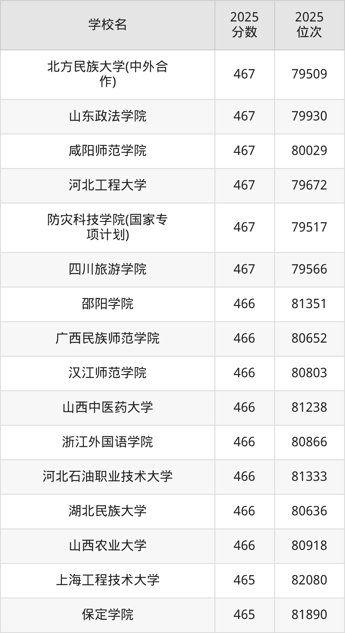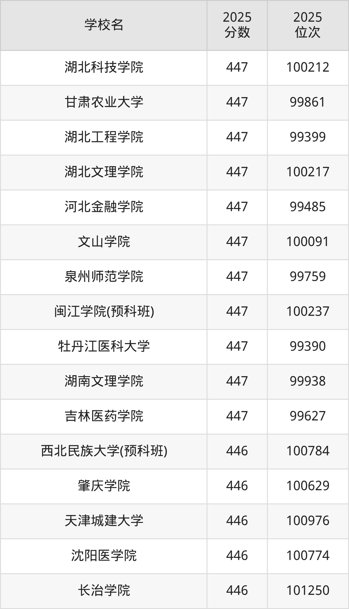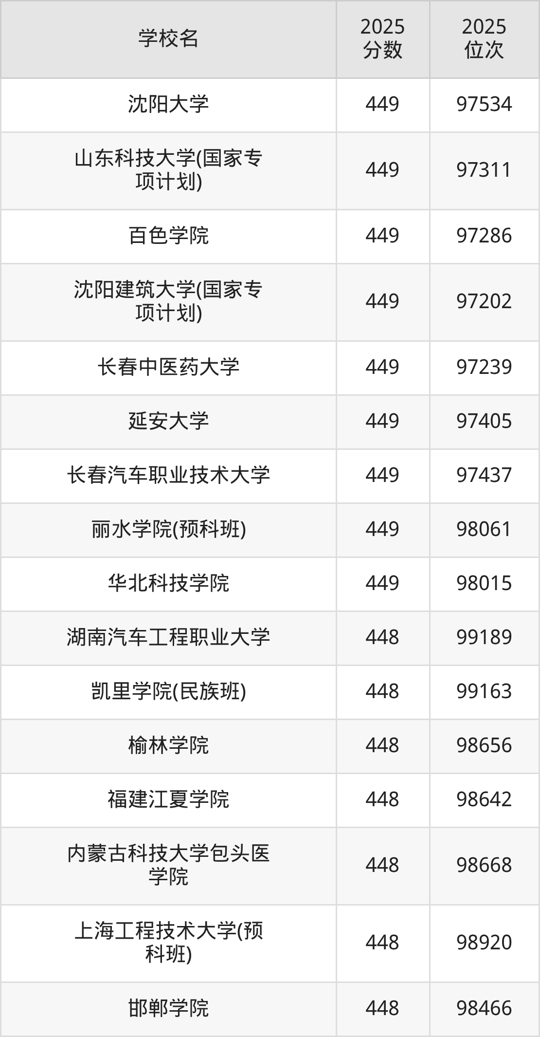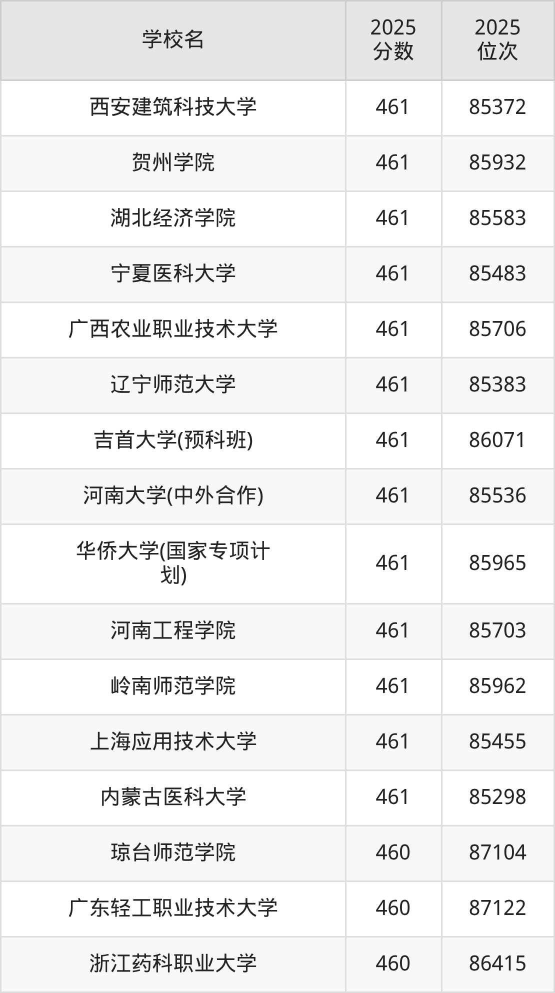 | 学校名 | 2025 分数 | 2025 位次 |