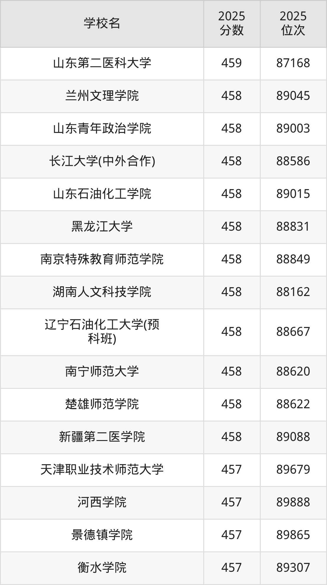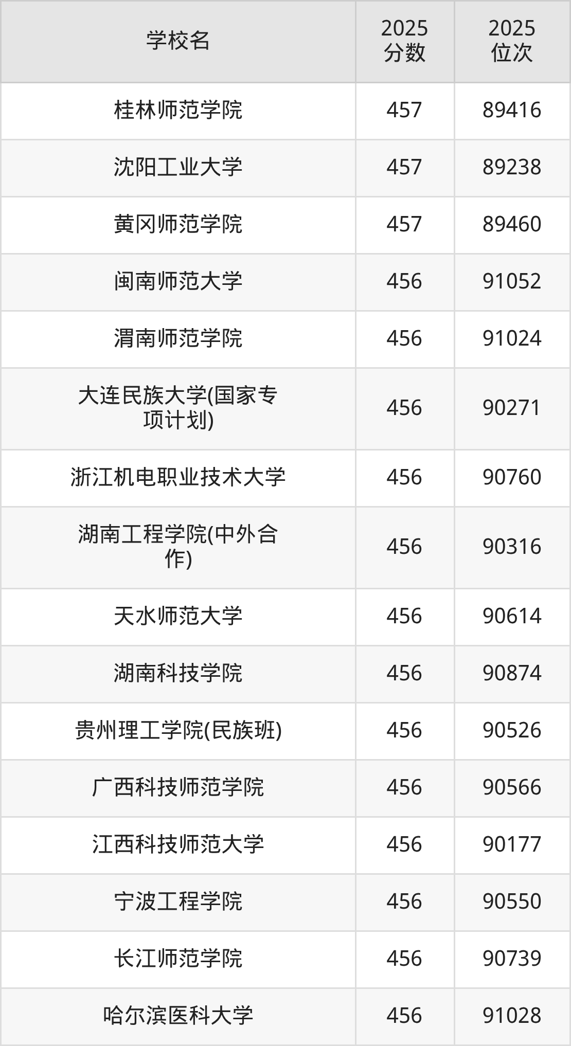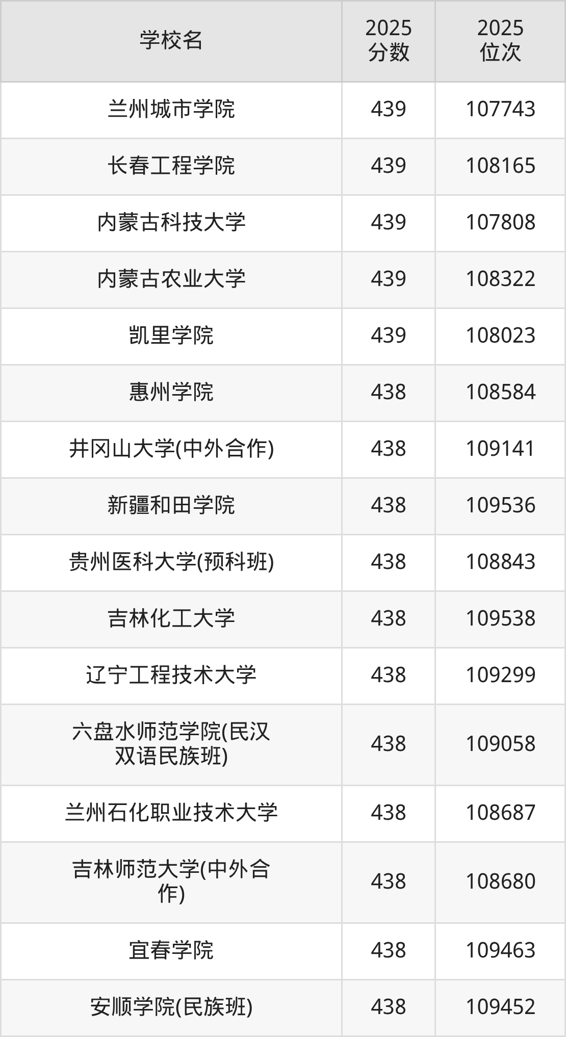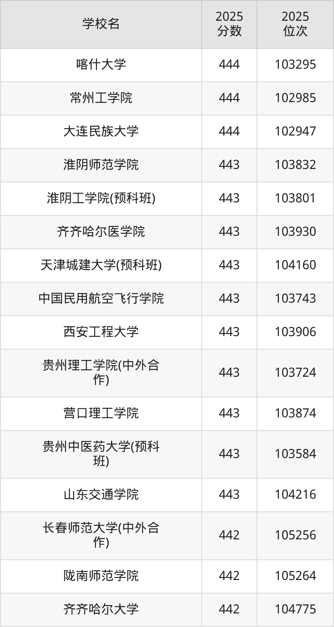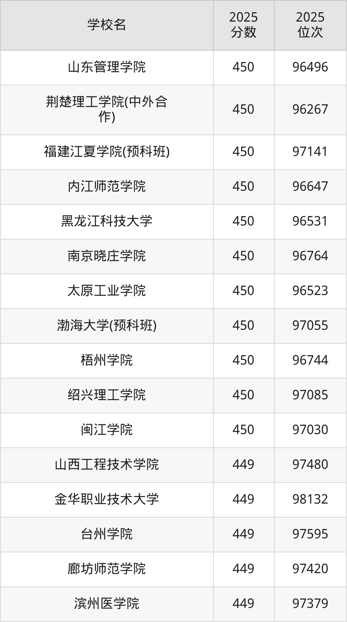 | 学校名 | 2025 分数 | 2025 位次 |