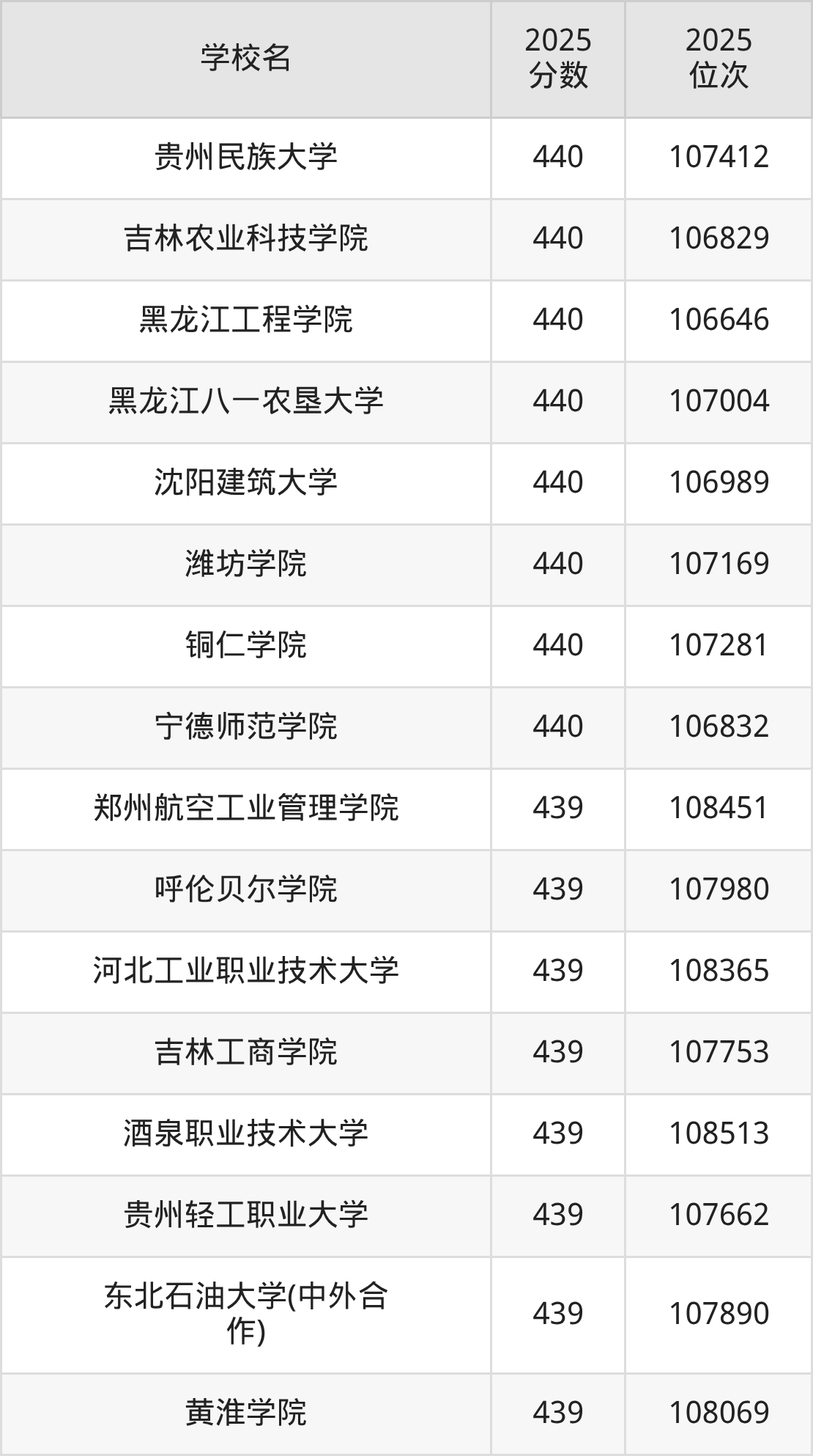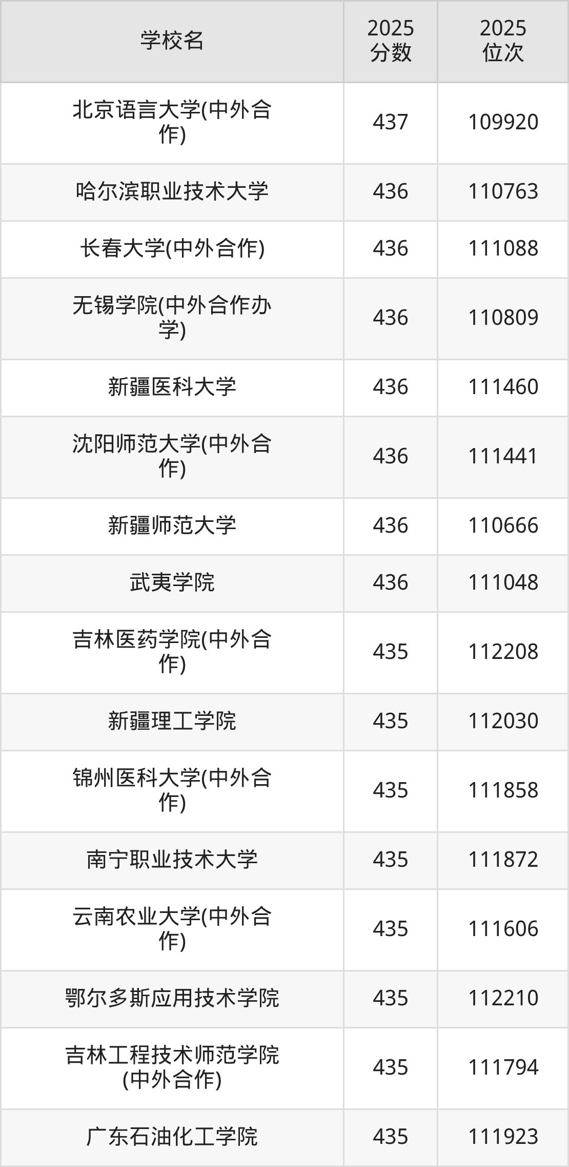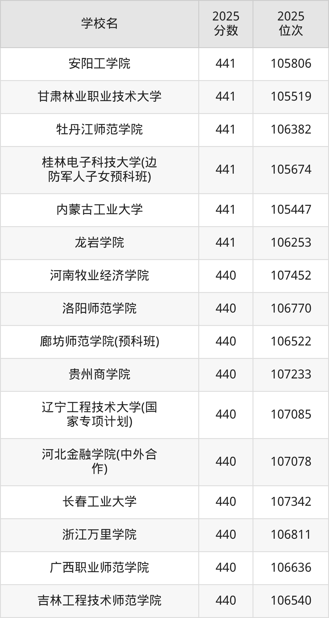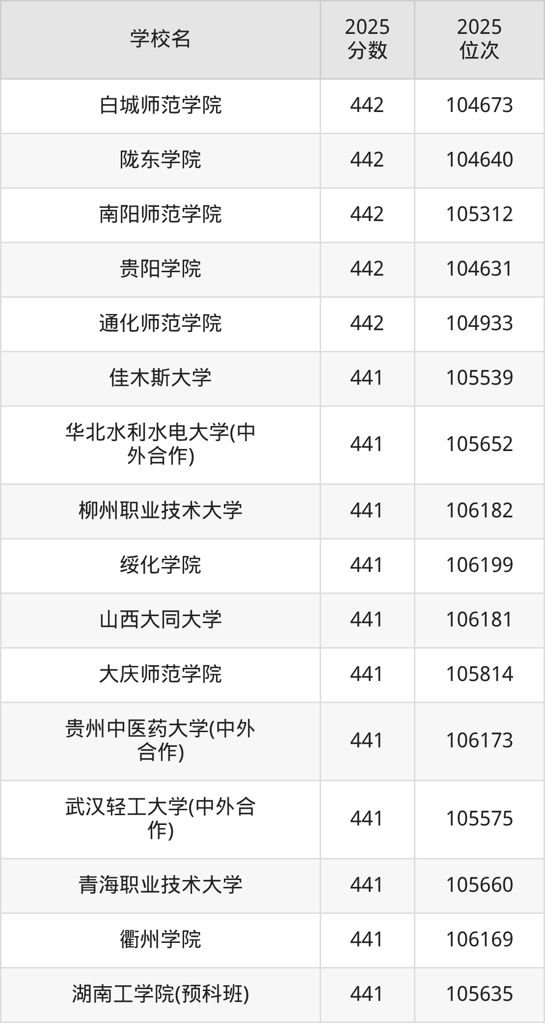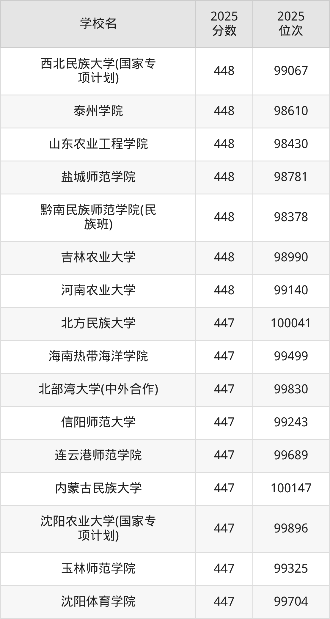 | 学校名 | 2025 分数 | 2025 位次 |