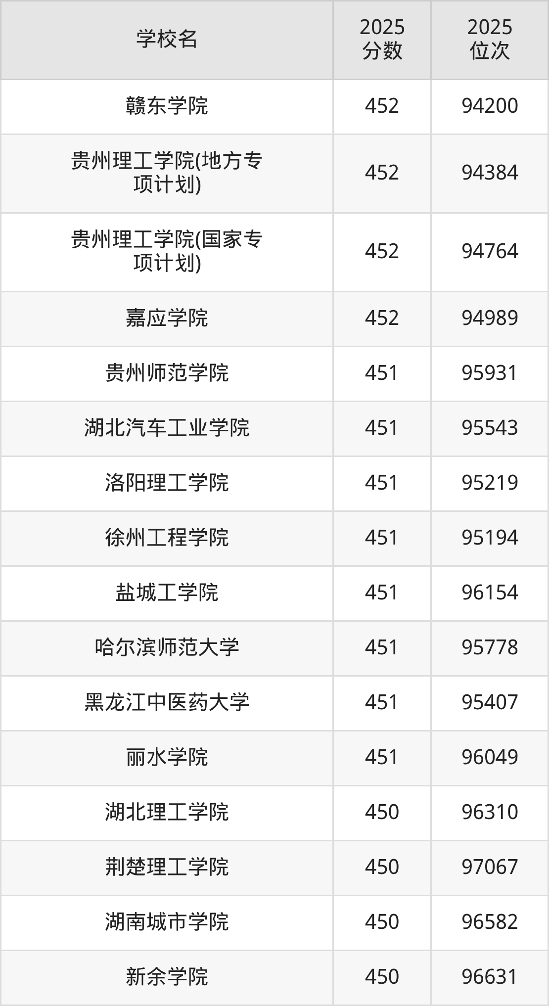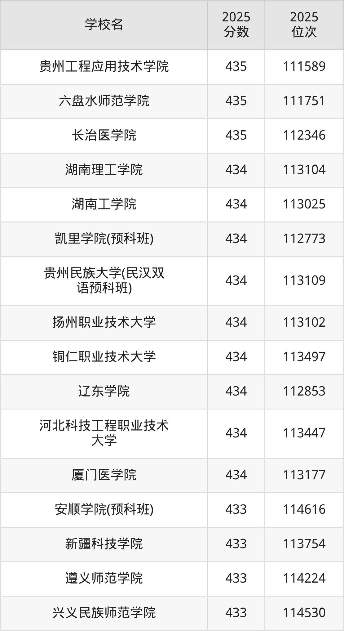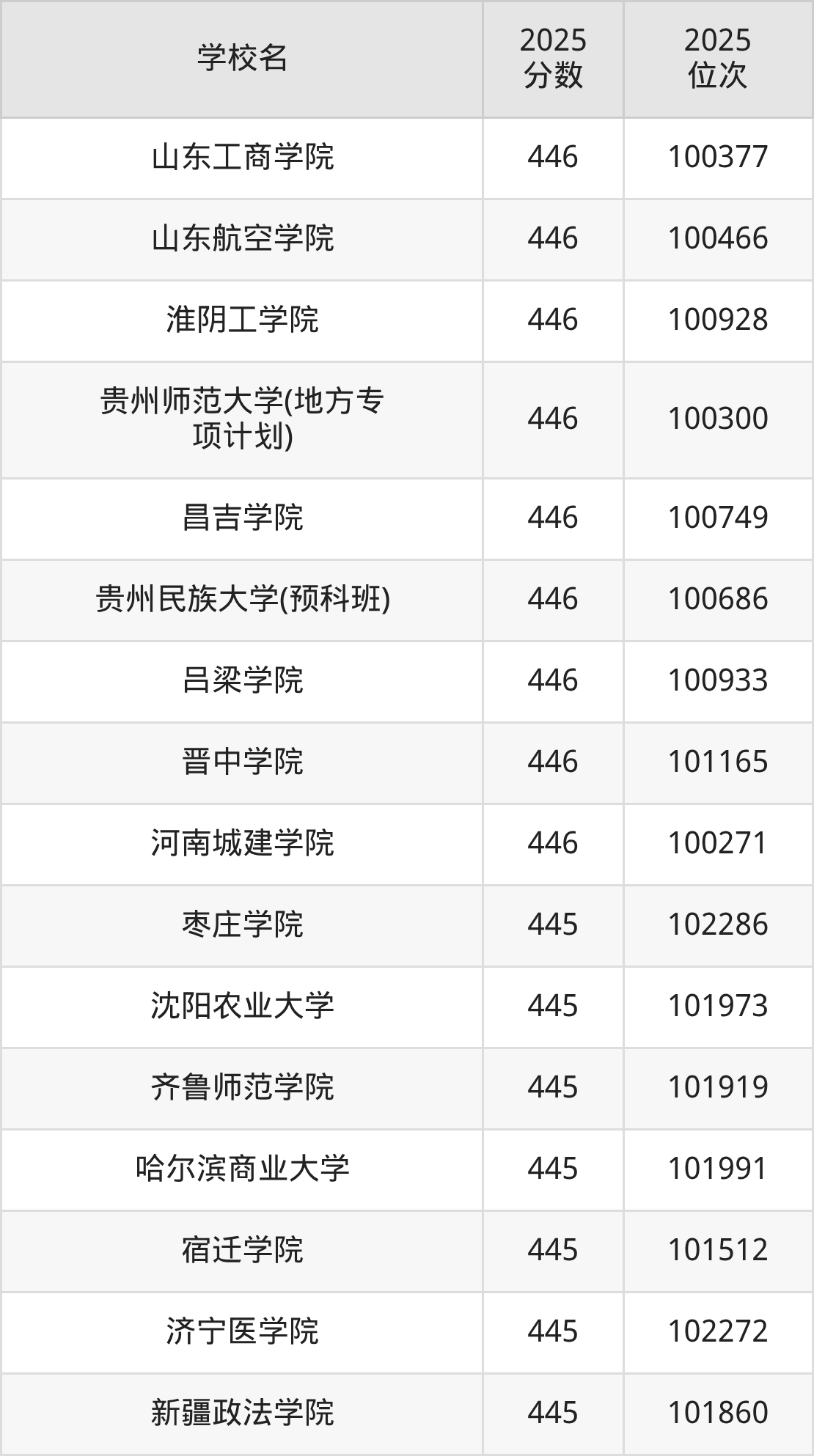 | 贵州轻工职业大学 | 445 | 44680 |