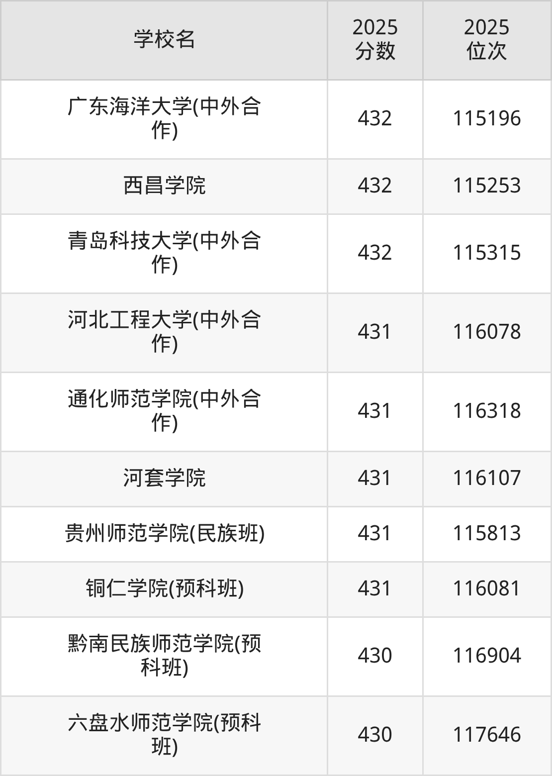 温馨提示:全国各省录取分数线不相同,本文以贵州省为例,为大家带来2025年录取分数线位于430到480分的公办本科大学名单汇总,并附上该分数段对应的位次排名区间,供查阅。