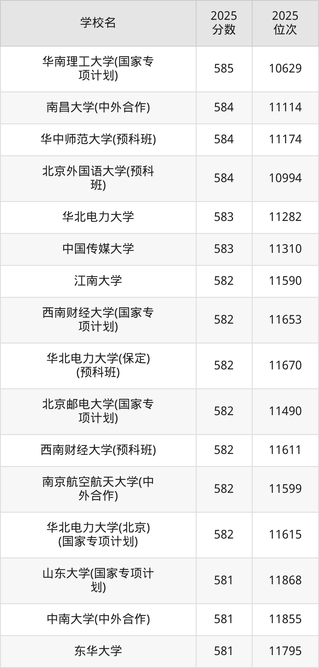 | 合肥工业大学(预科班) | 581 | 3934 |