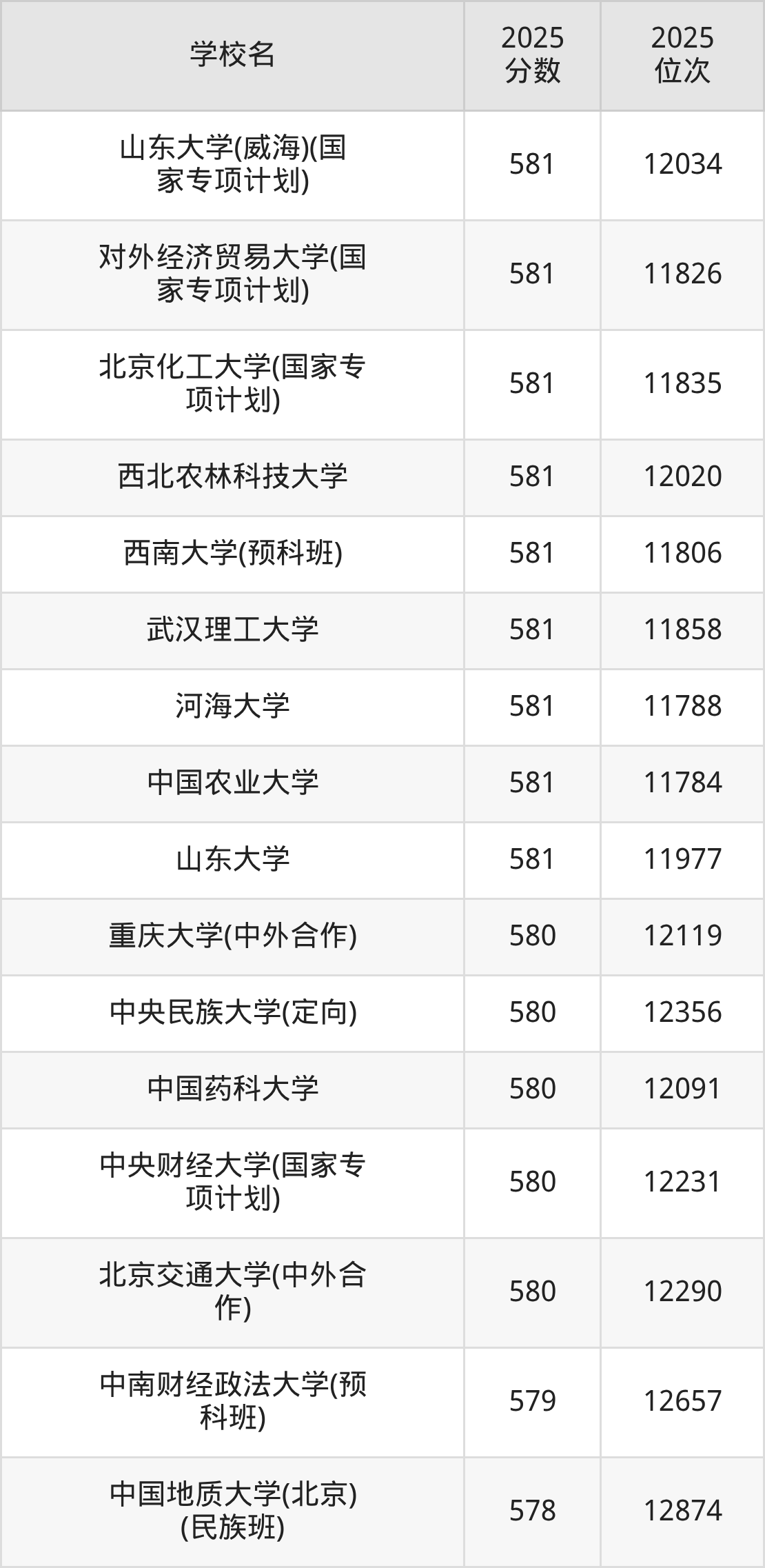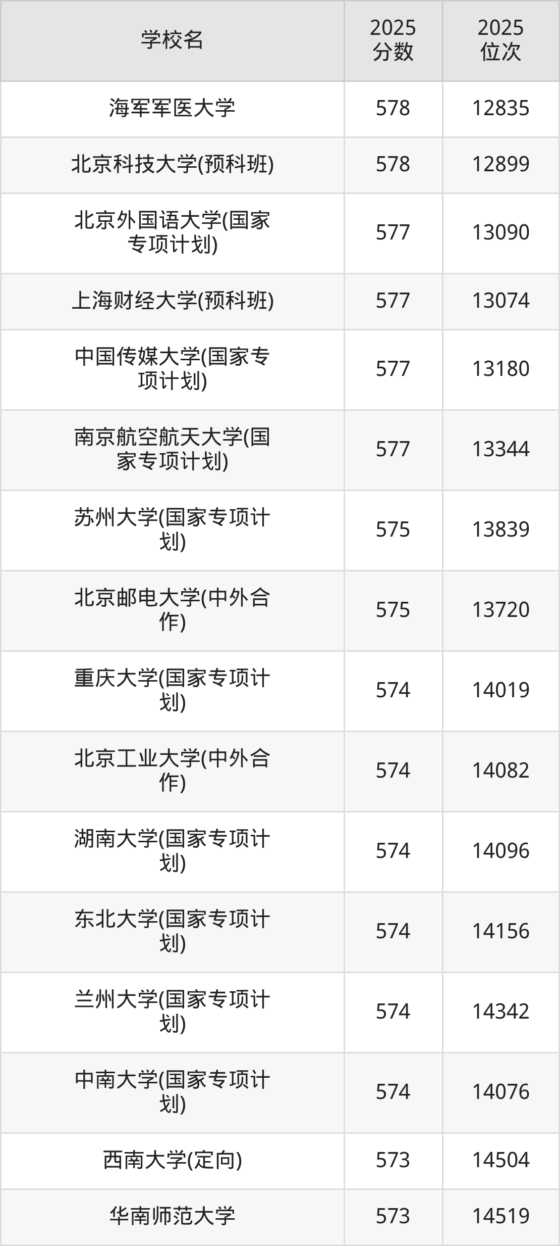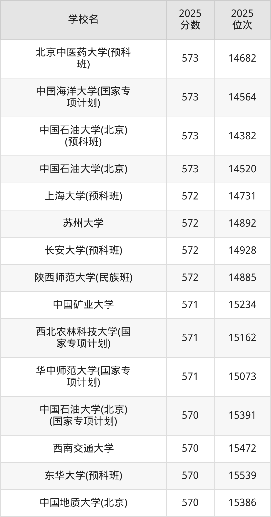 录取分数线的波动较大,下面圆梦小编为大家带来了2025年570到590分对应的位次排名区间,建议2026年位于该位次范围内的考生参考上文所整理的学校(本文仅针对贵州省)。