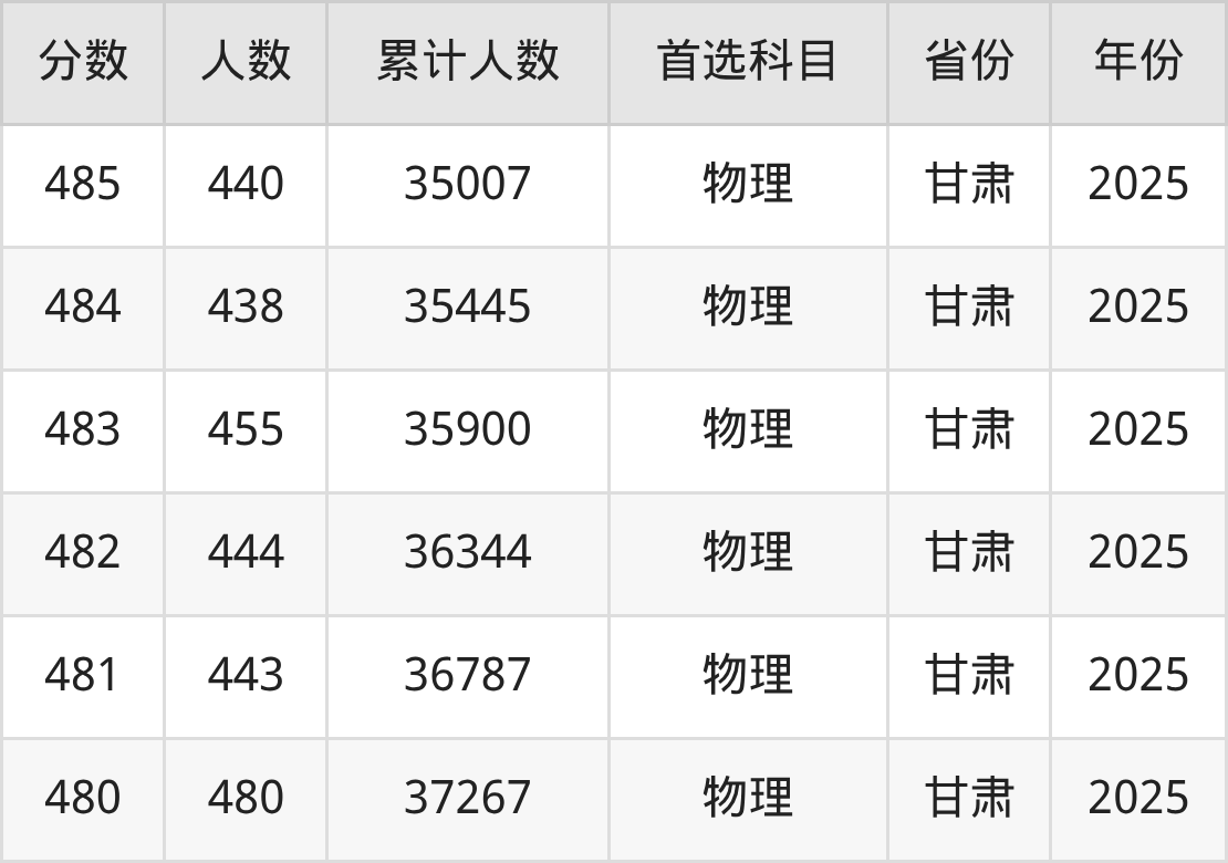 温馨提示:全国各省录取分数线不相同,本文以甘肃省为例,为大家带来2025年录取分数线位于480到500分的985大学名单汇总,并附上该分数段对应的位次排名区间,供查阅。