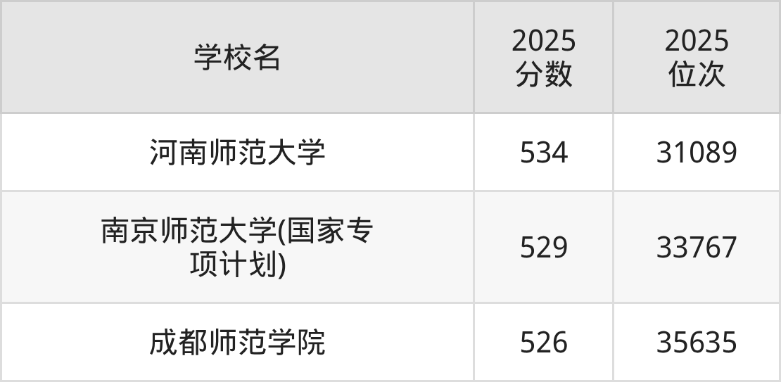 | 学校名 | 2025 分数 | 2025 位次 |