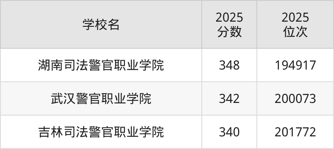 温馨提示:全国各省录取分数线不相同,本文以广西壮族自治区为例,为大家带来2025年录取分数线位于300到350分的公安警校名单汇总,并附上该分数段对应的位次排名区间,供查阅。