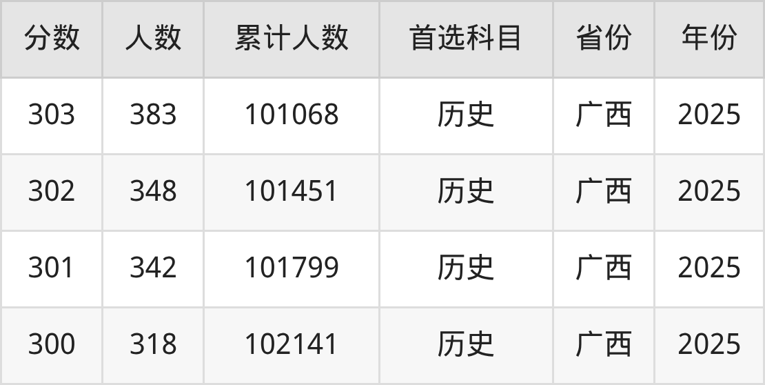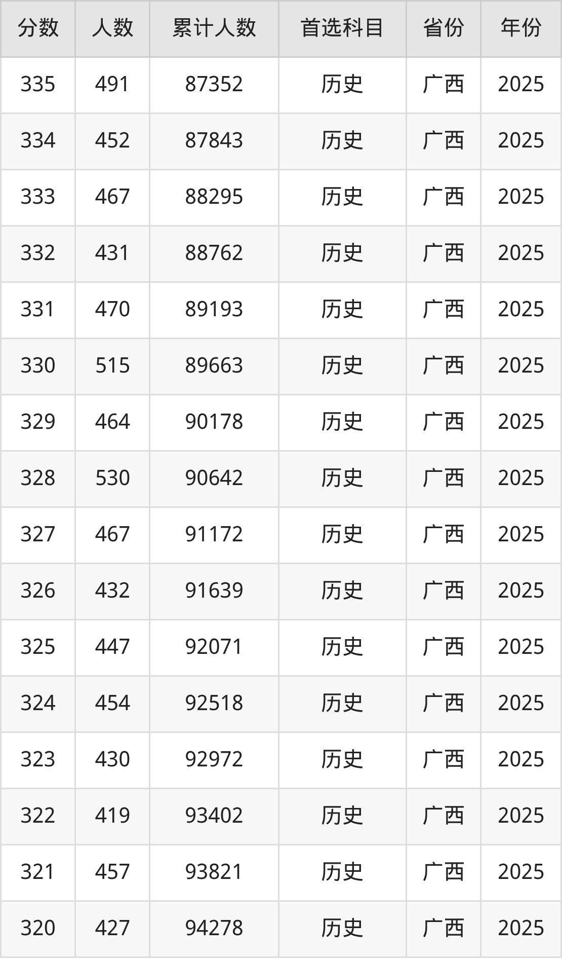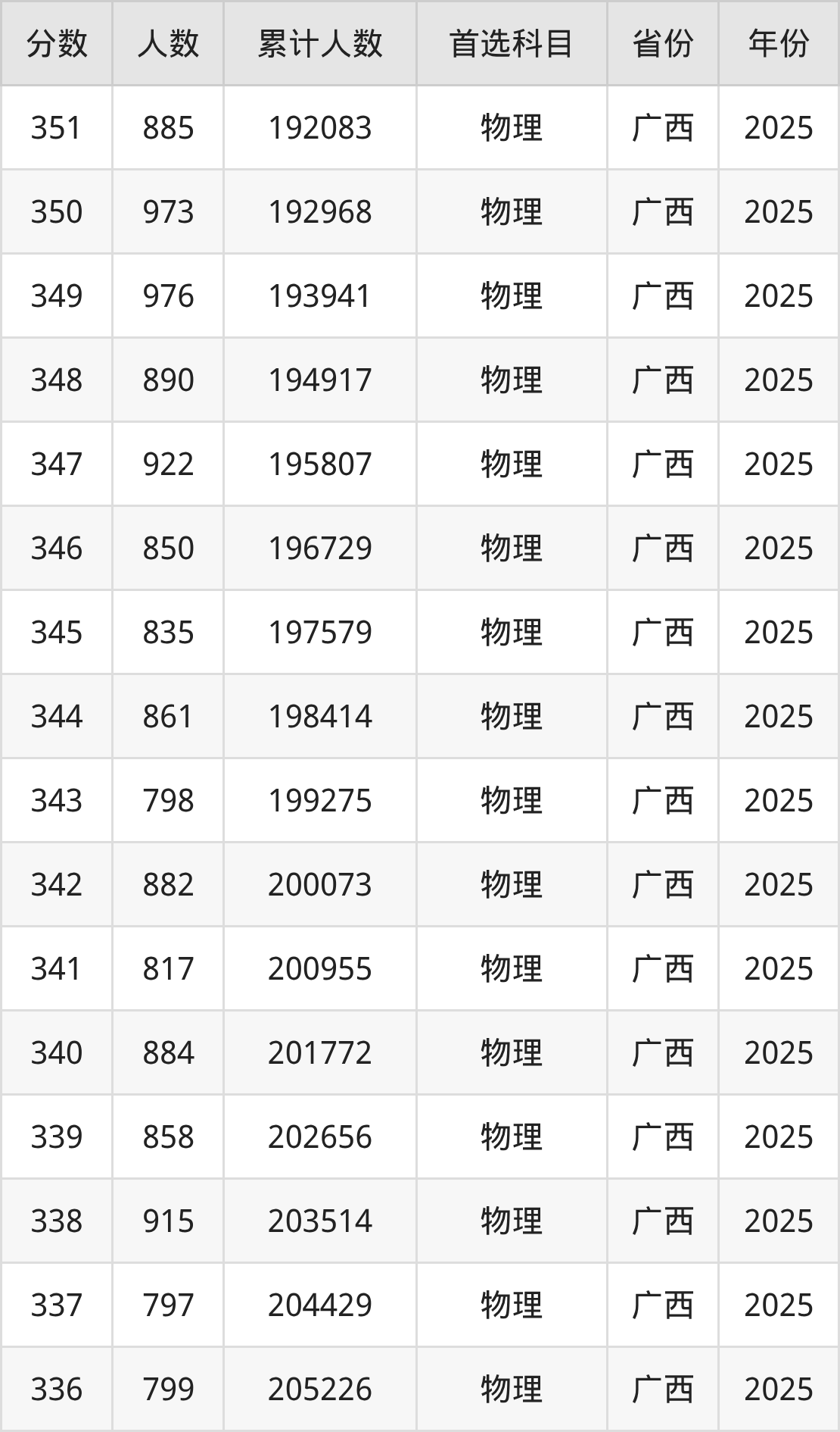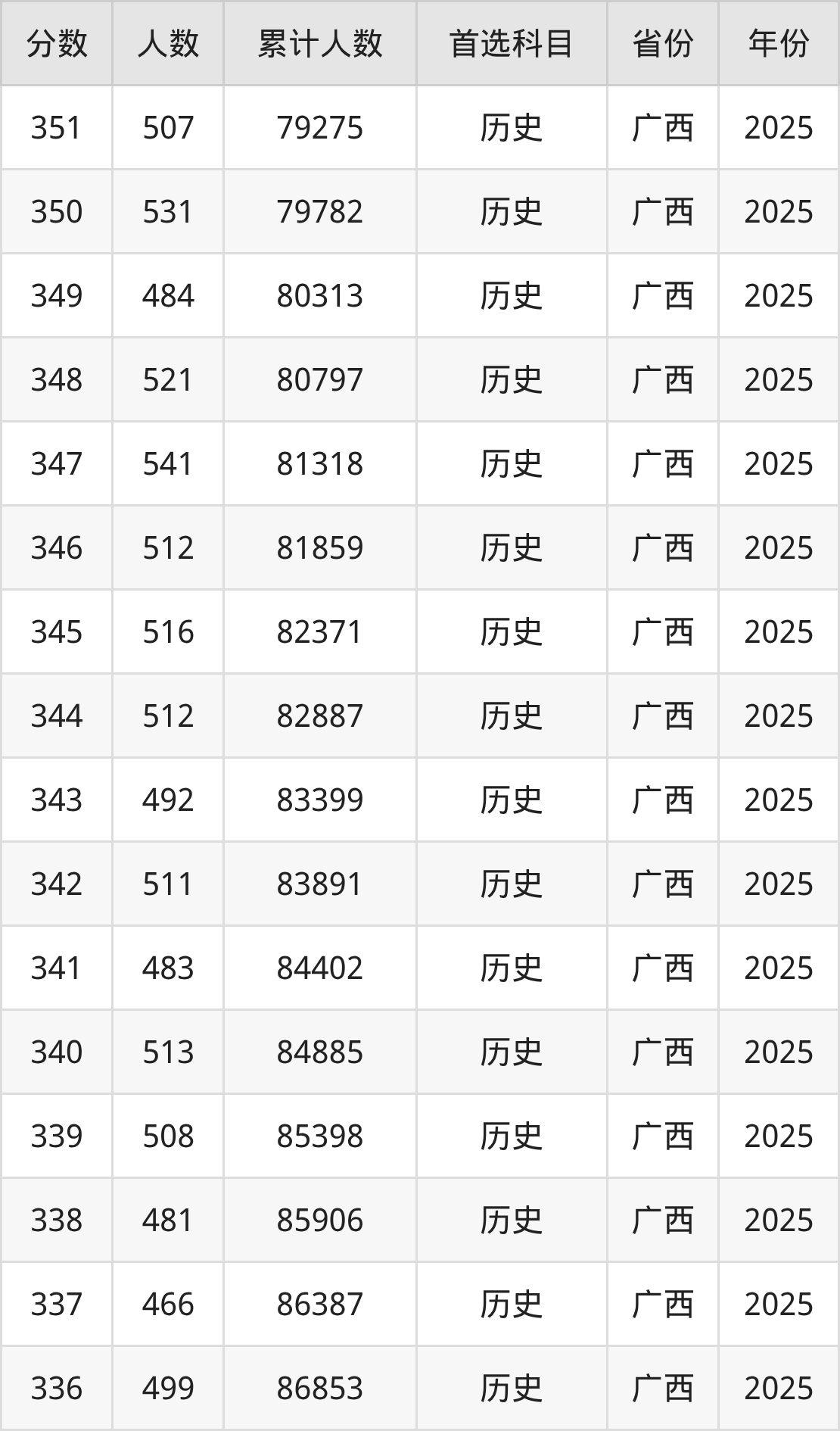 录取分数线的波动较大,下面圆梦小编为大家带来了2025年300到350分对应的位次排名区间,建议2026年位于该位次范围内的考生参考上文所整理的学校(本文仅针对广西壮族自治区)。