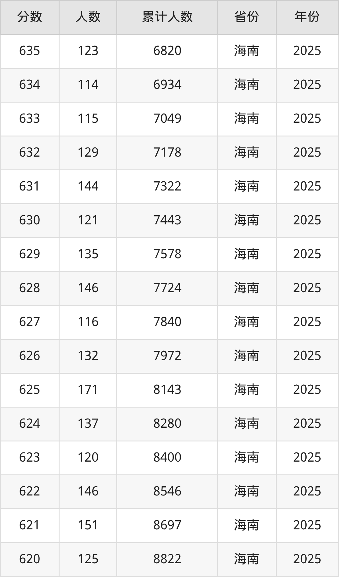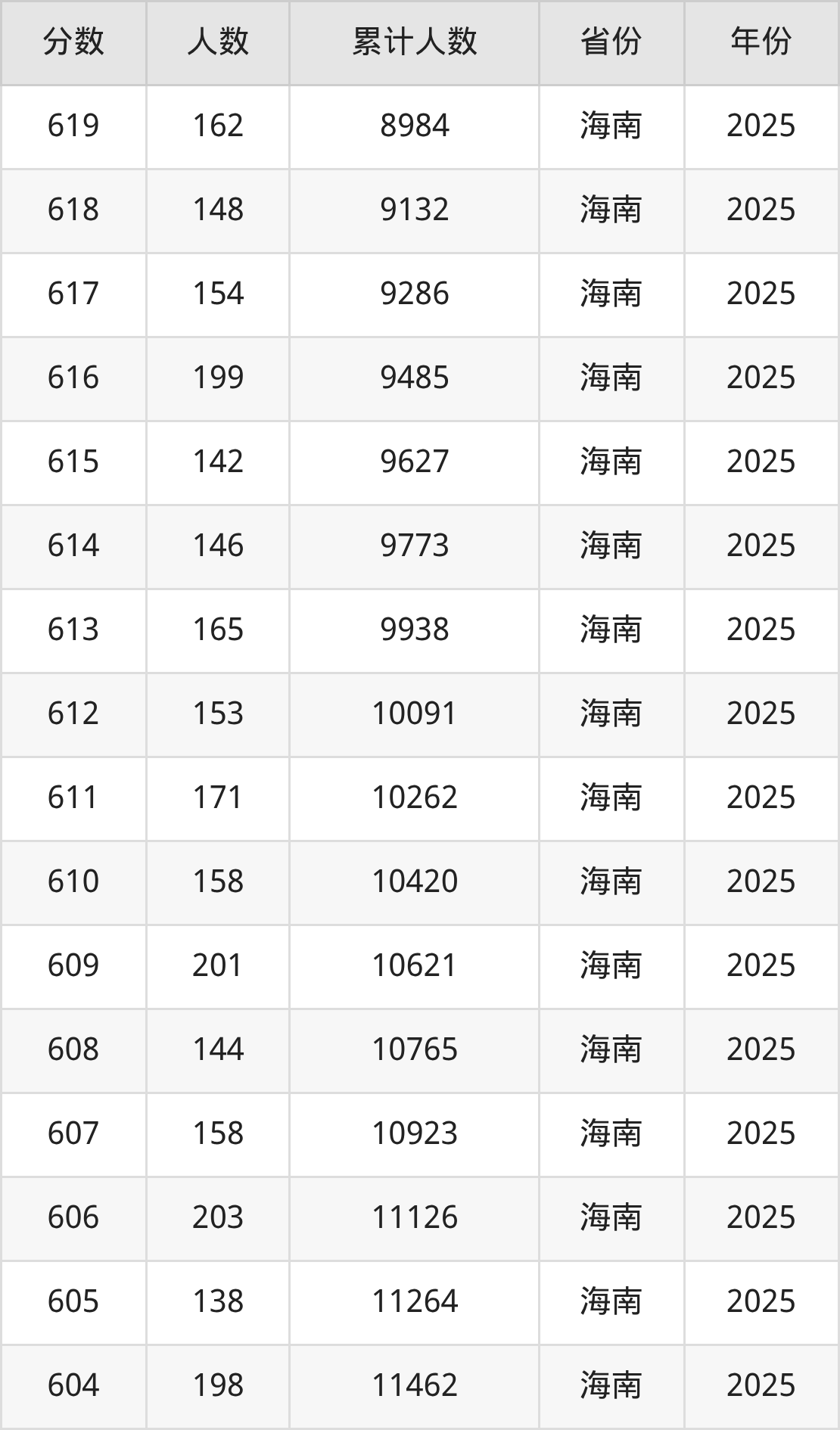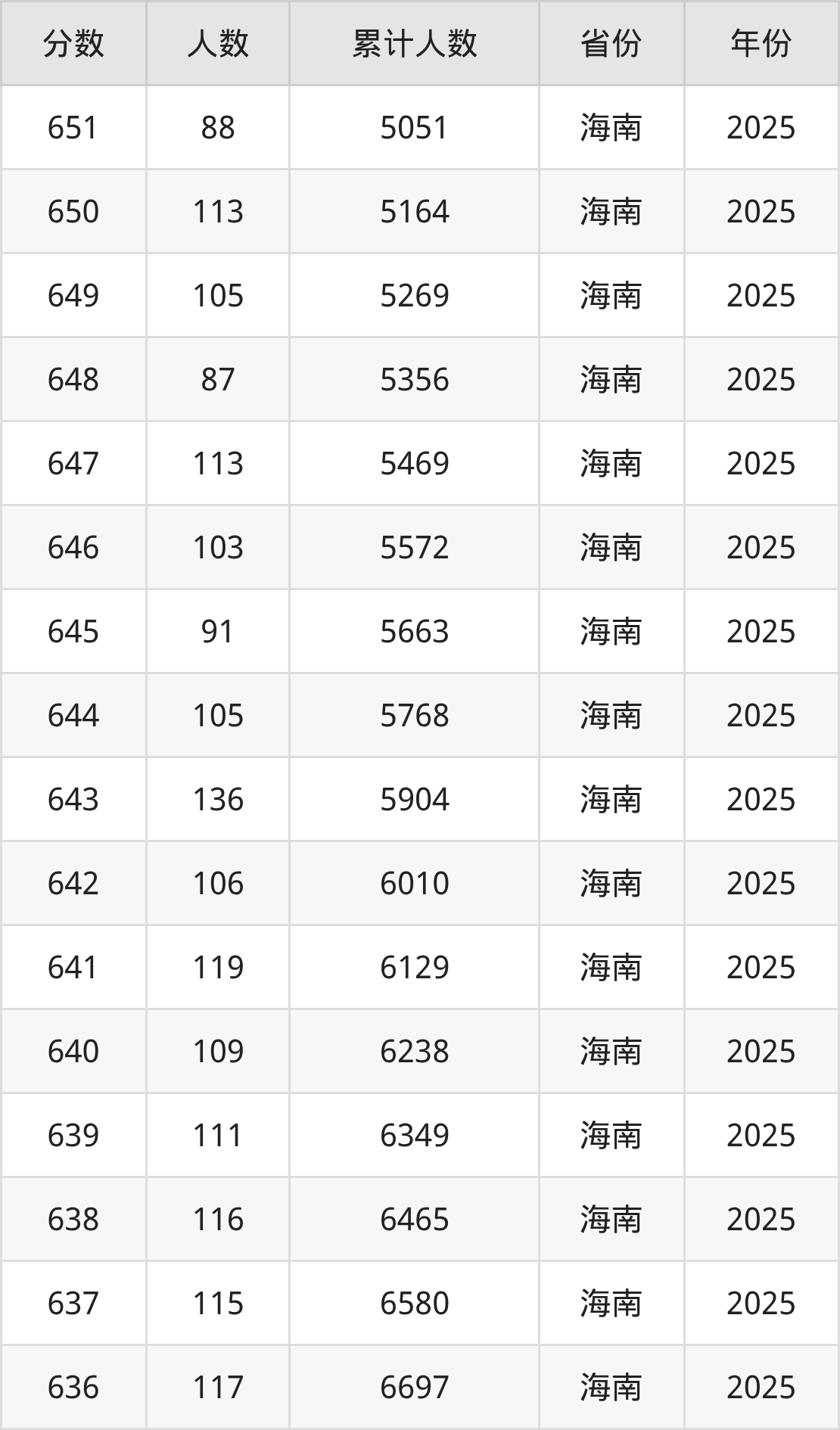 录取分数线的波动较大,下面圆梦小编为大家带来了2025年600到650分对应的位次排名区间,建议2026年位于该位次范围内的考生参考上文所整理的学校(本文仅针对海南省)。