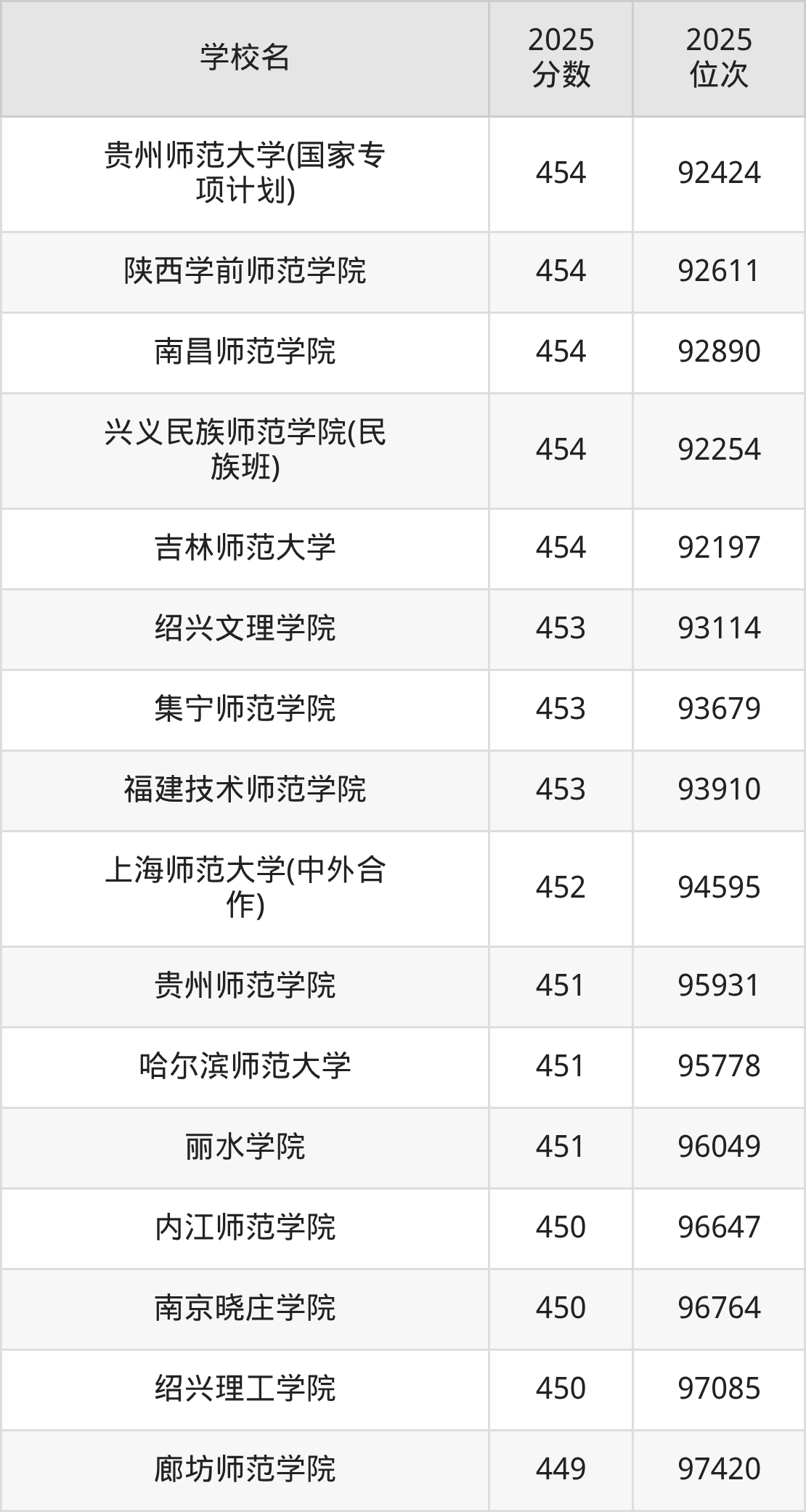 温馨提示:全国各省录取分数线不相同,本文以贵州省为例,为大家带来2025年录取分数线位于420到460分的师范大学名单汇总,并附上该分数段对应的位次排名区间,供查阅。