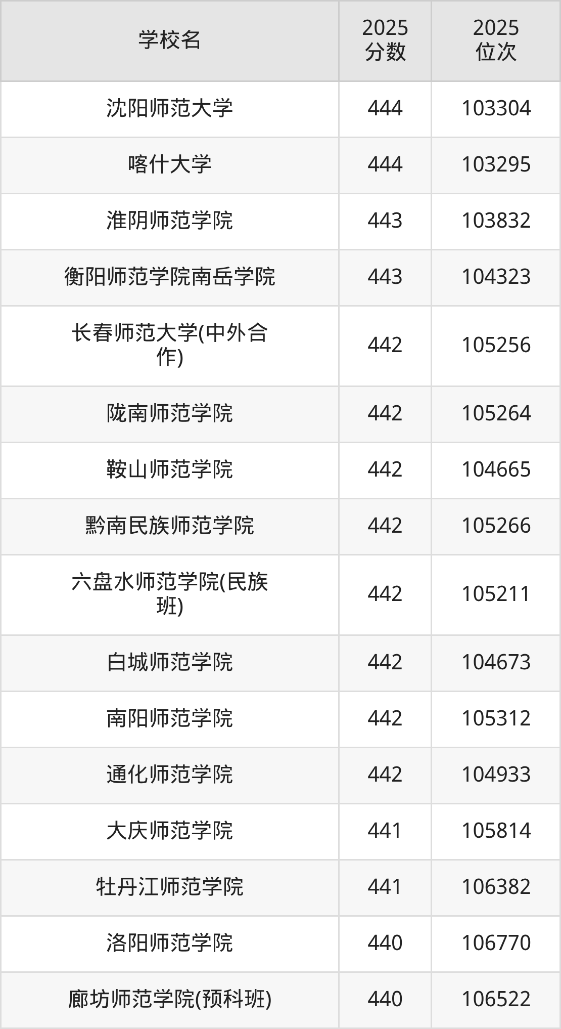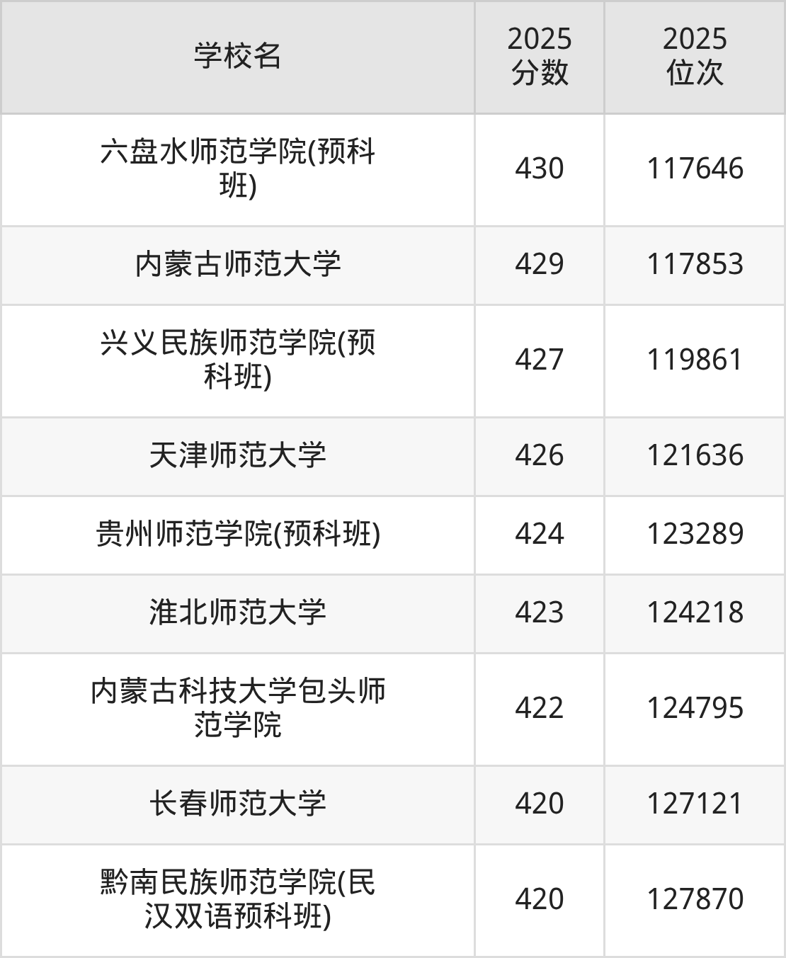 | 学校名 | 2025 分数 | 2025 位次 |