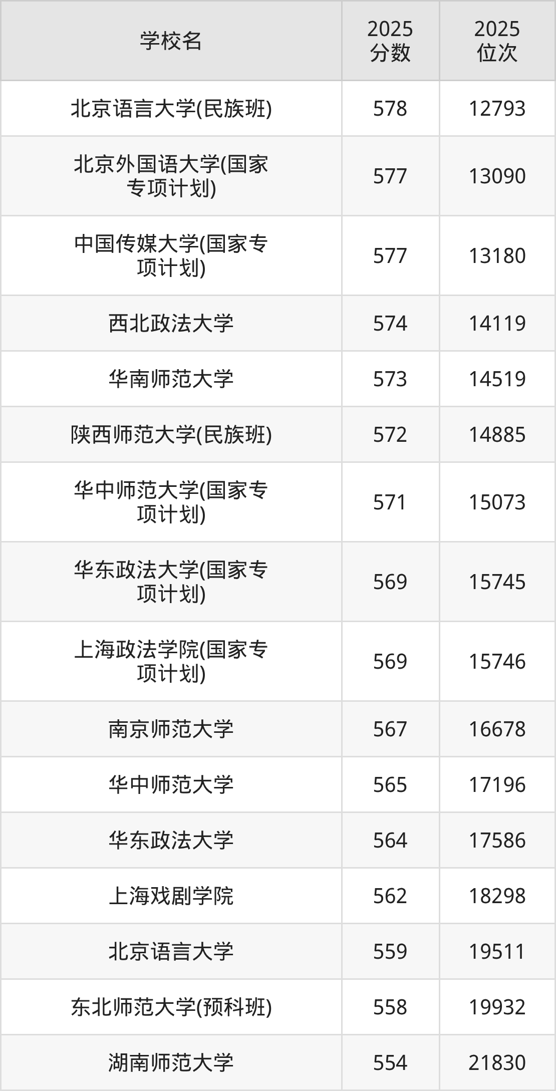 | 西北师范大学(民族班) | 549 | 8533 |