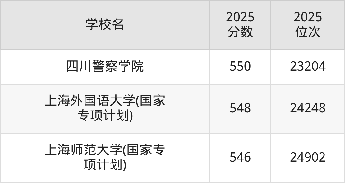 | 学校名 | 2025 分数 | 2025 位次 |