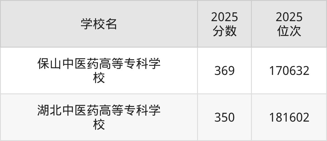 物理类350到380分的大学中分数对应位次最高的是保山中医药高等专科学校,2025年最低分369分,对应最低位次是170632名;分数对应位次最低的是湖北中医药高等专科学校,2025年最低分350分,对应最低位次是181602名。