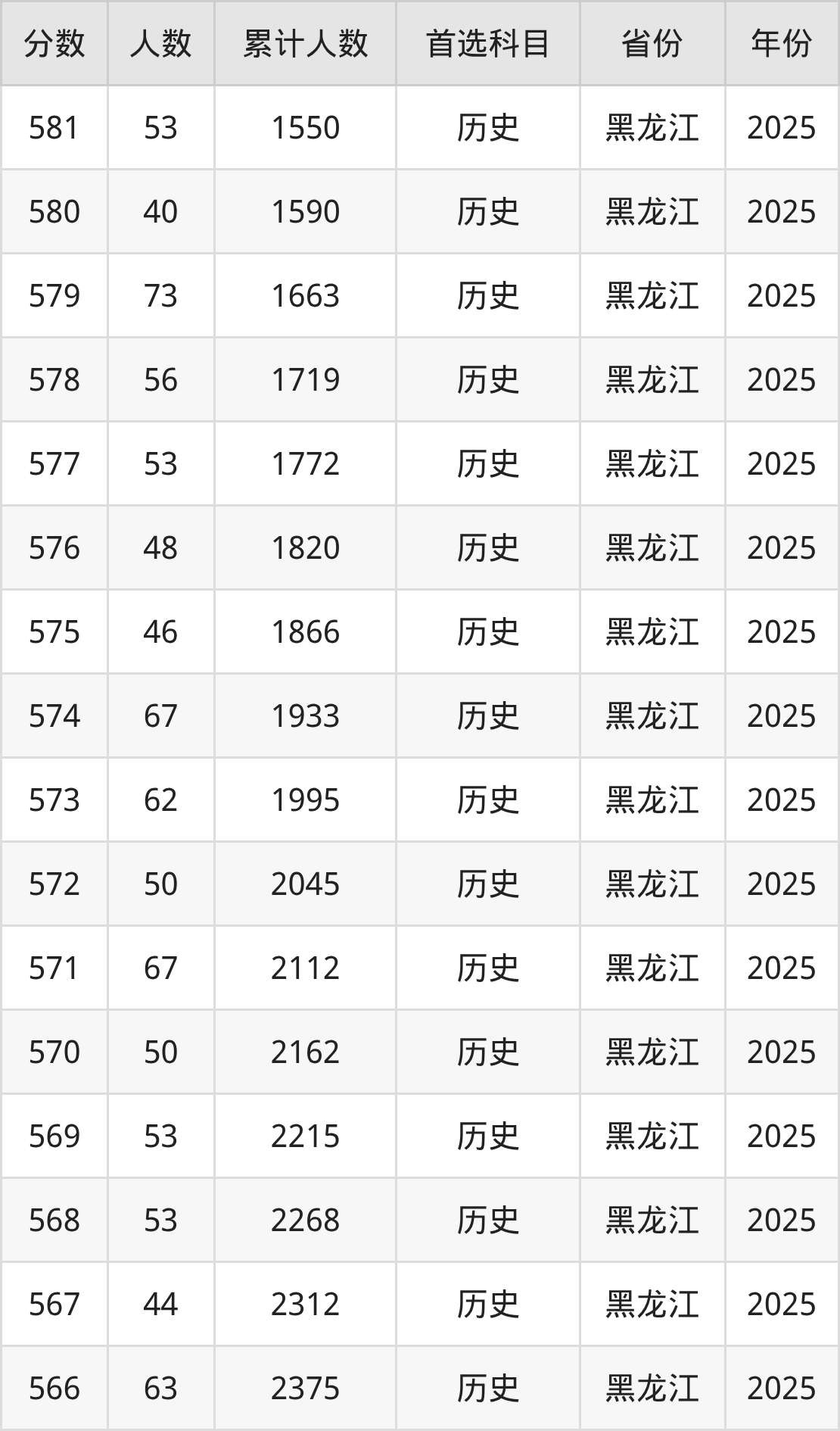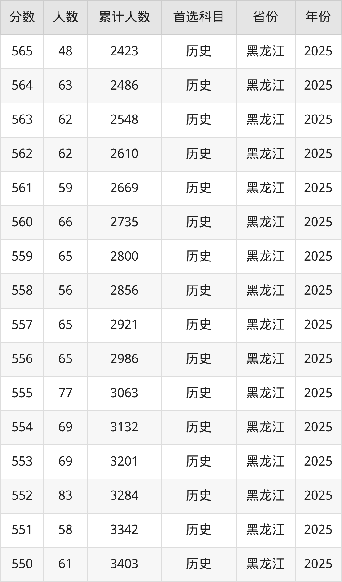 历史类550到580分的位次排名:1551名~3403名