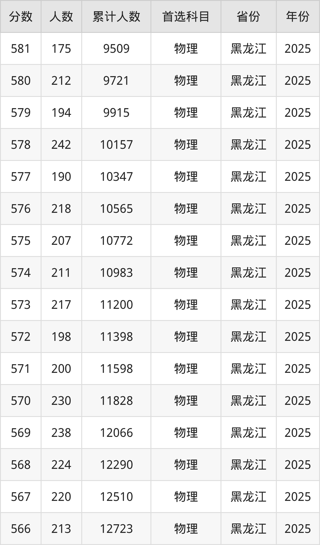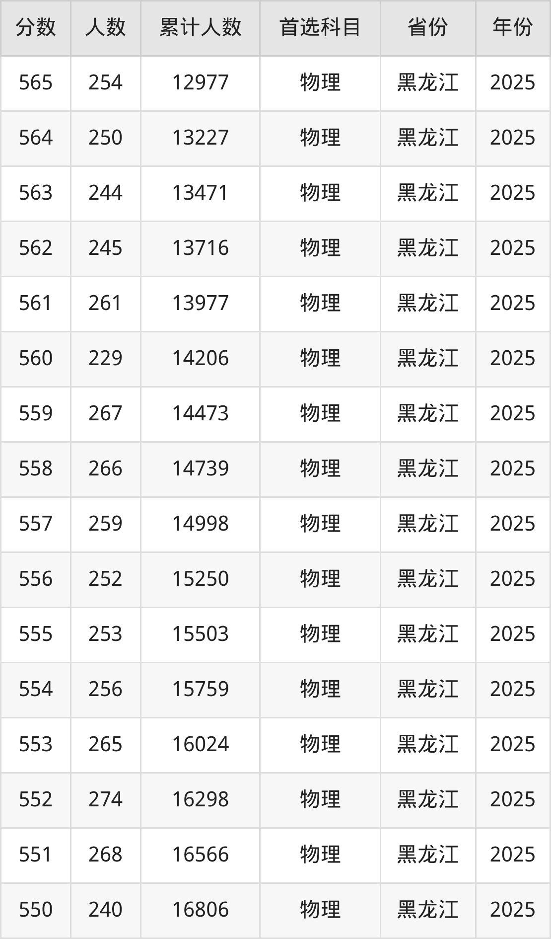 物理类550到580分的位次排名:9510名~16806名
