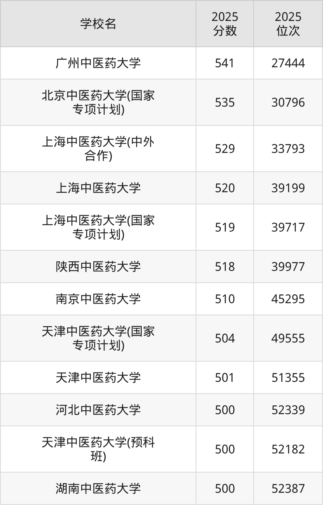 温馨提示:全国各省录取分数线不相同,本文以贵州省为例,为大家带来2025年录取分数线位于500到550分的中医药大学名单汇总,并附上该分数段对应的位次排名区间,供查阅。