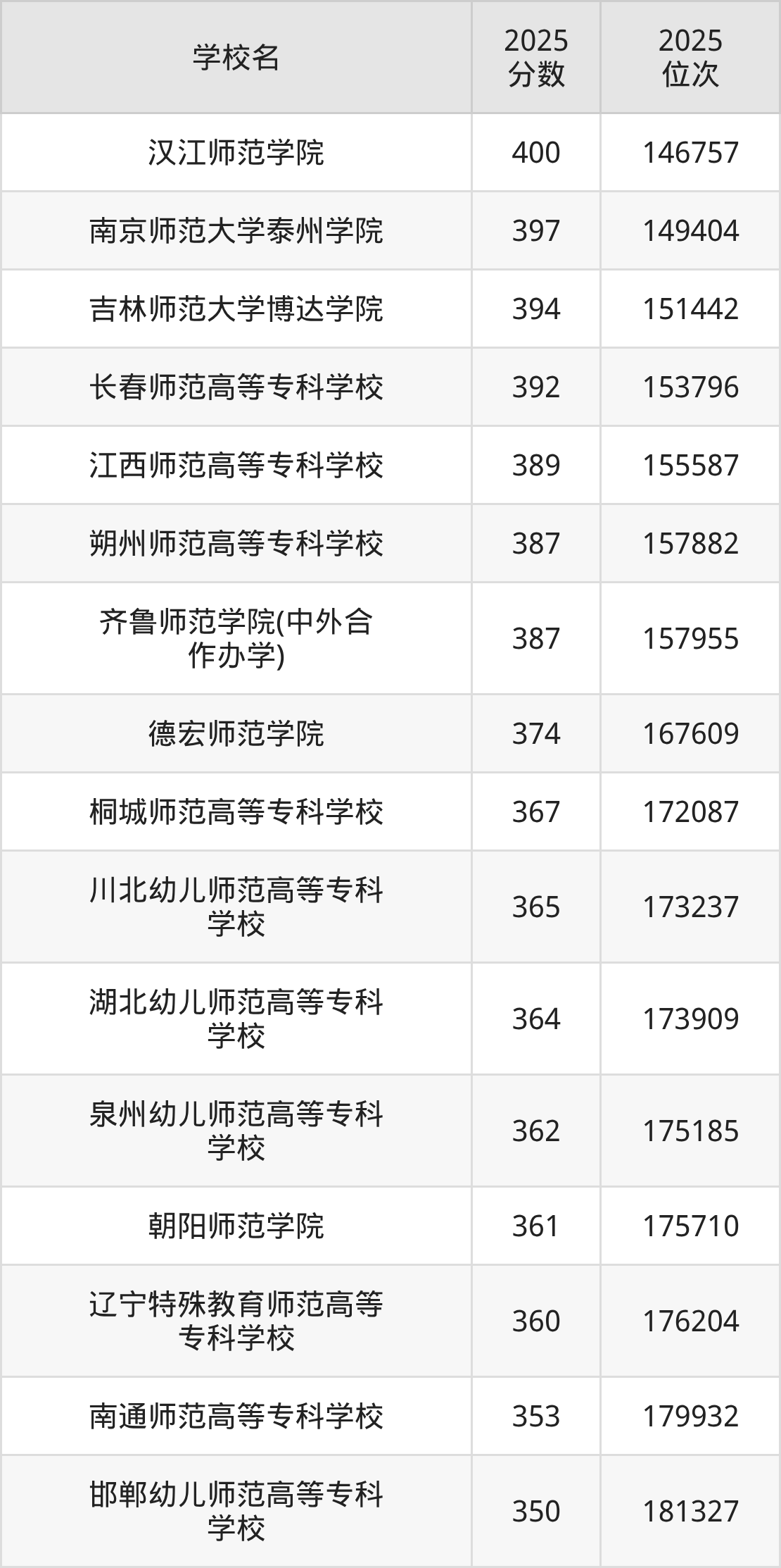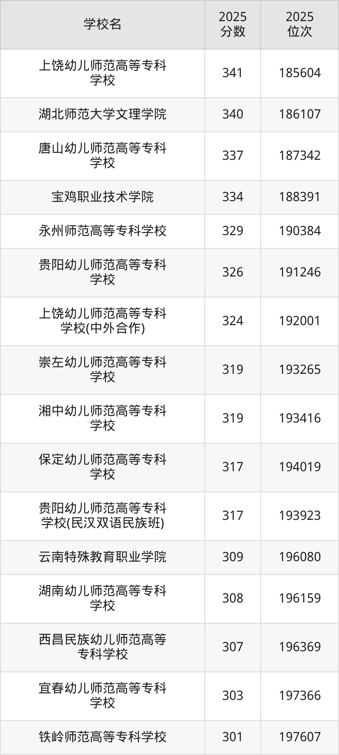 | 上饶幼儿师范高等专科 学校 | 383 | 69405 |