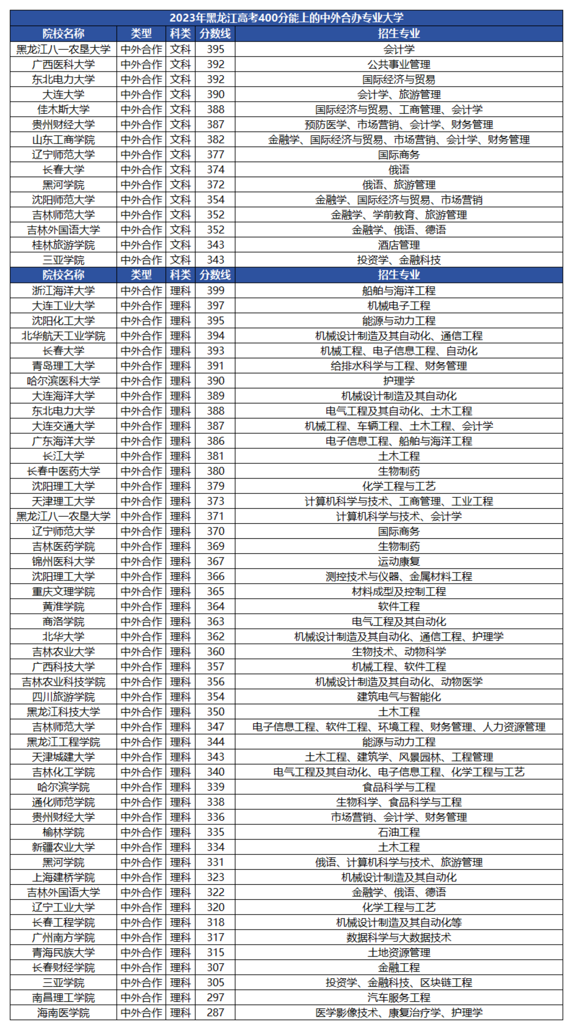 本文就以黑龙江、广西为例,为大家整理400分能上的中外合作办学专业及院校名单,供大家参考。