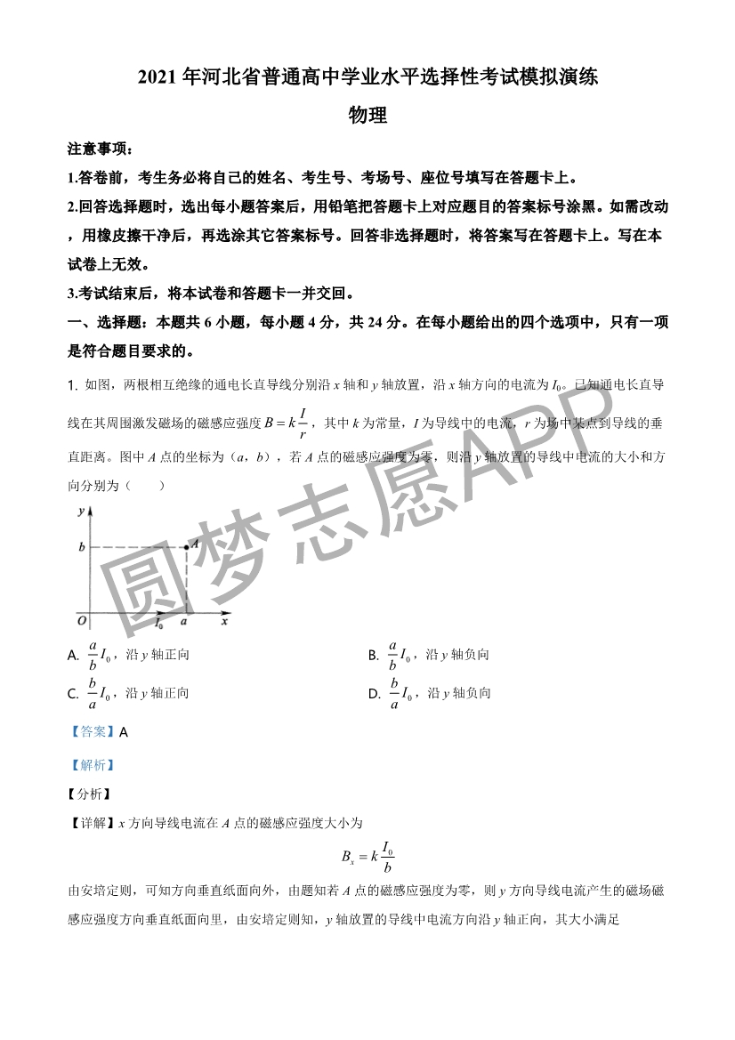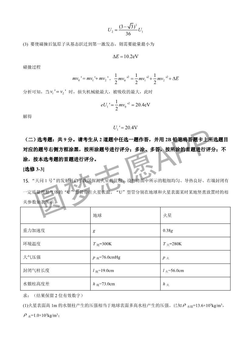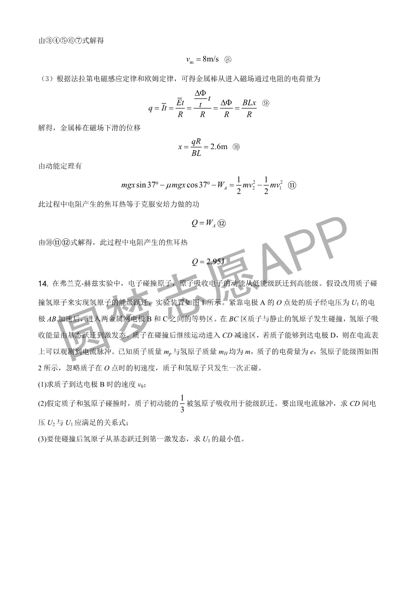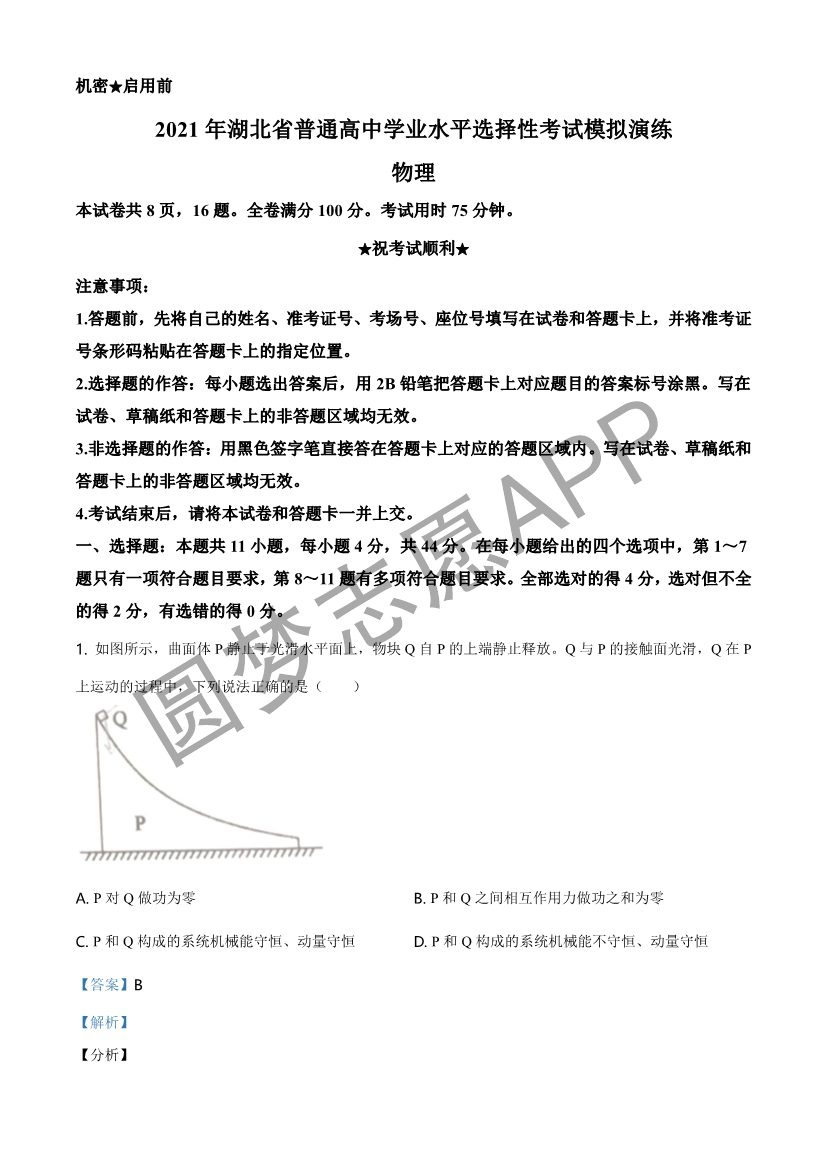 7、2021年新高考八省联考湖北省物理试卷及答案