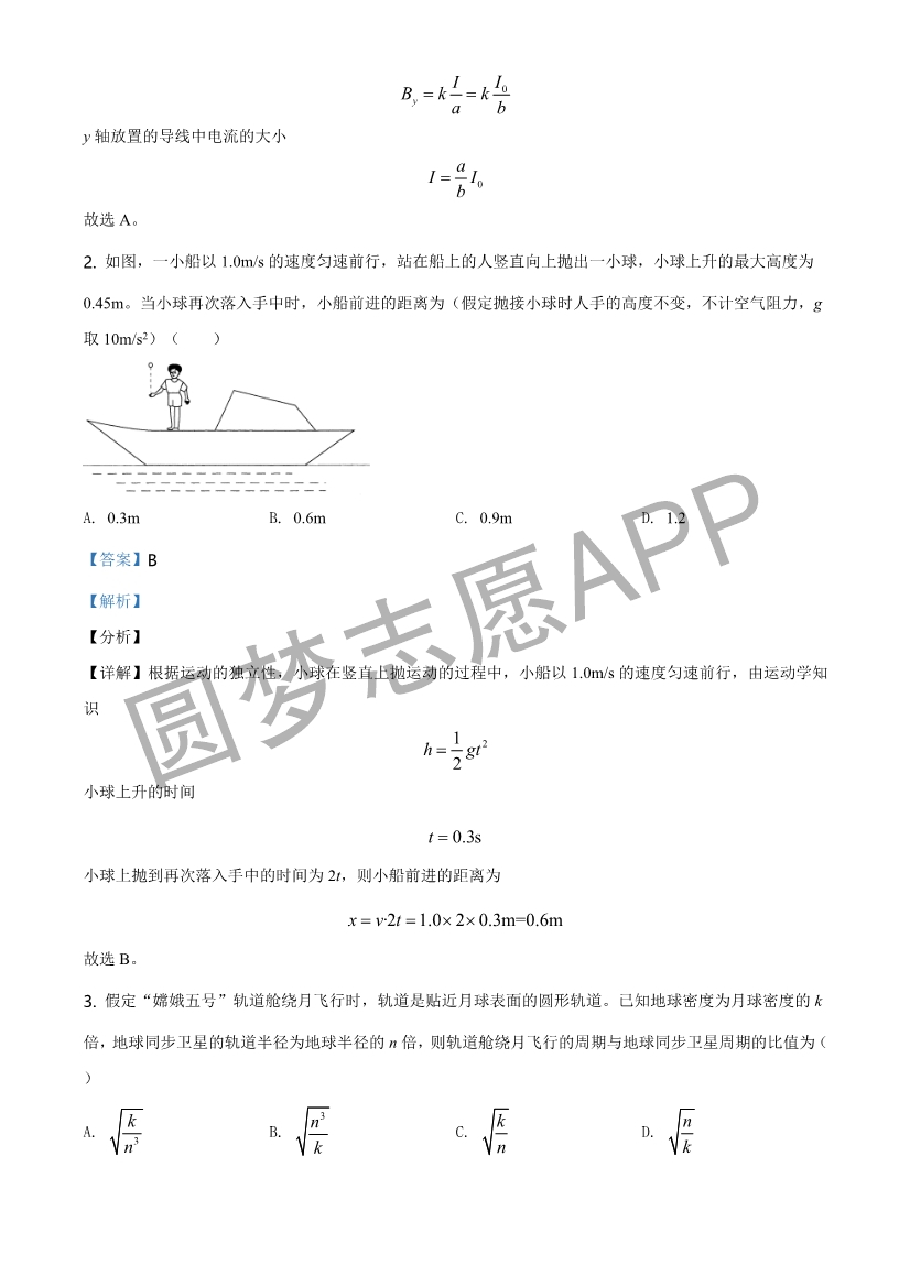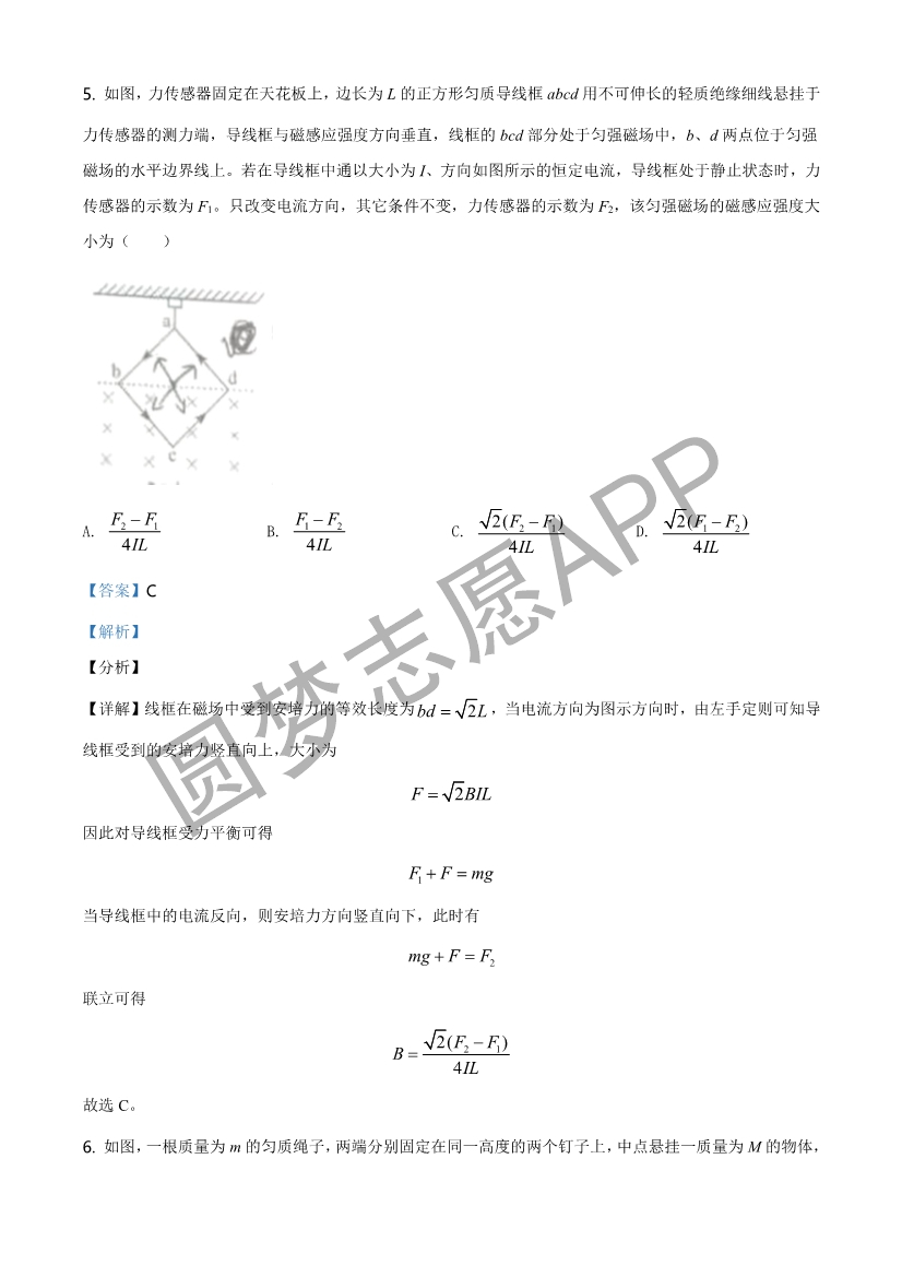 4、2021年新高考八省联考江苏省物理试卷及答案