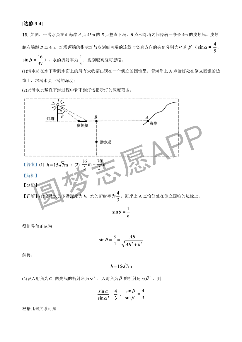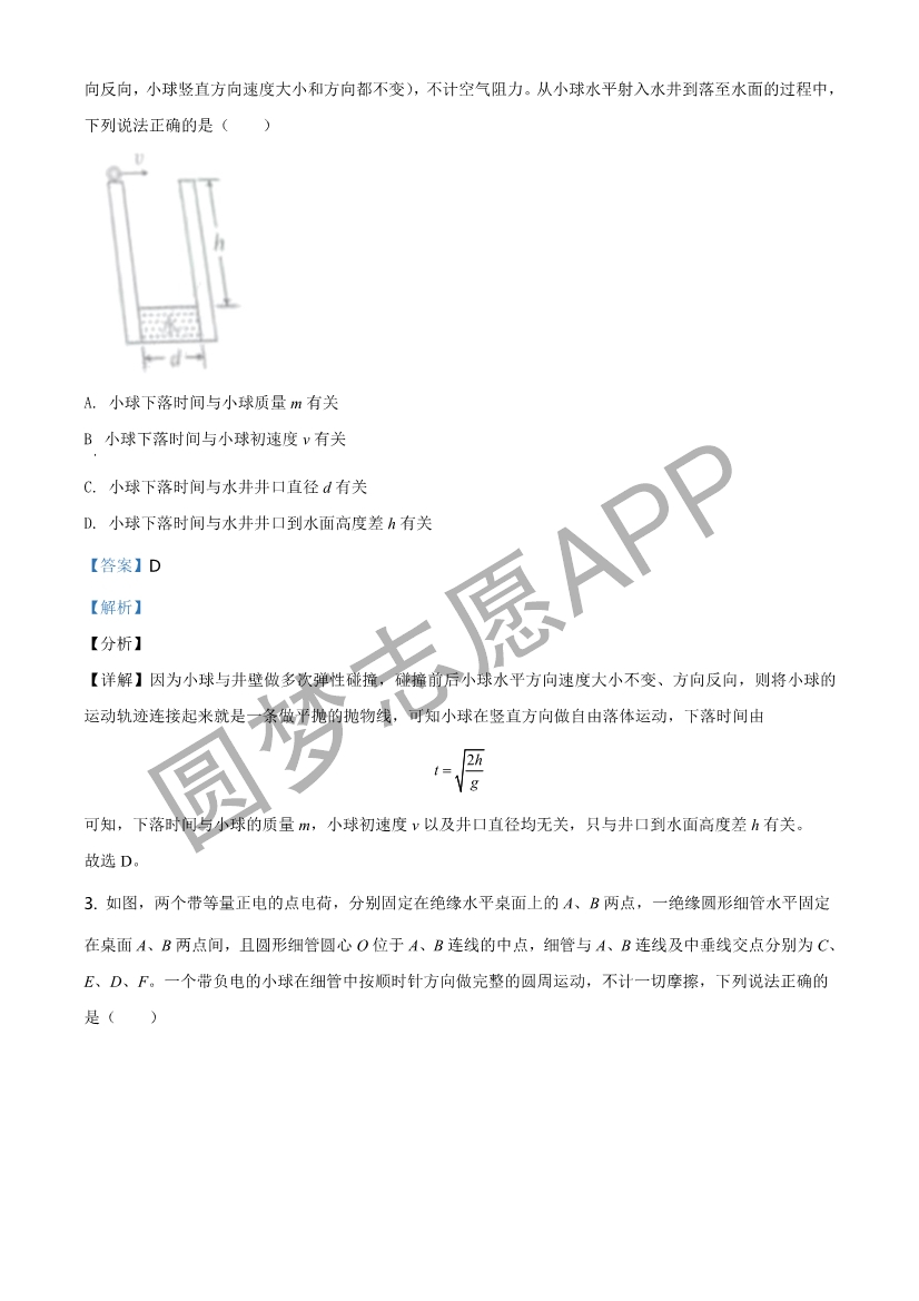 3、2021年新高考八省联考重庆市物理试卷及答案