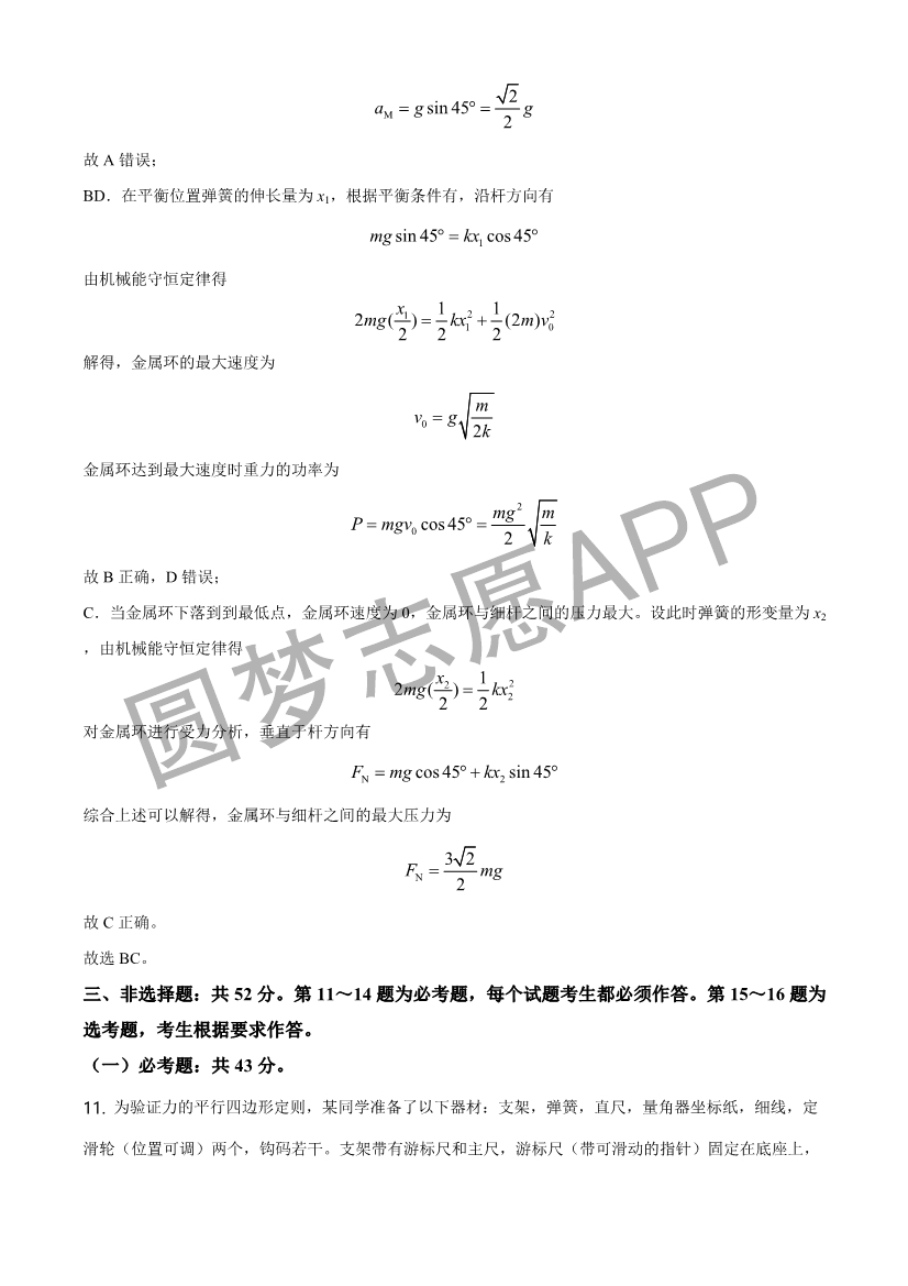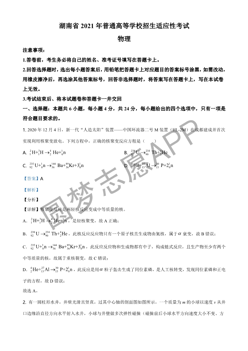 6、2021年新高考八省联考湖南省物理试卷及答案
