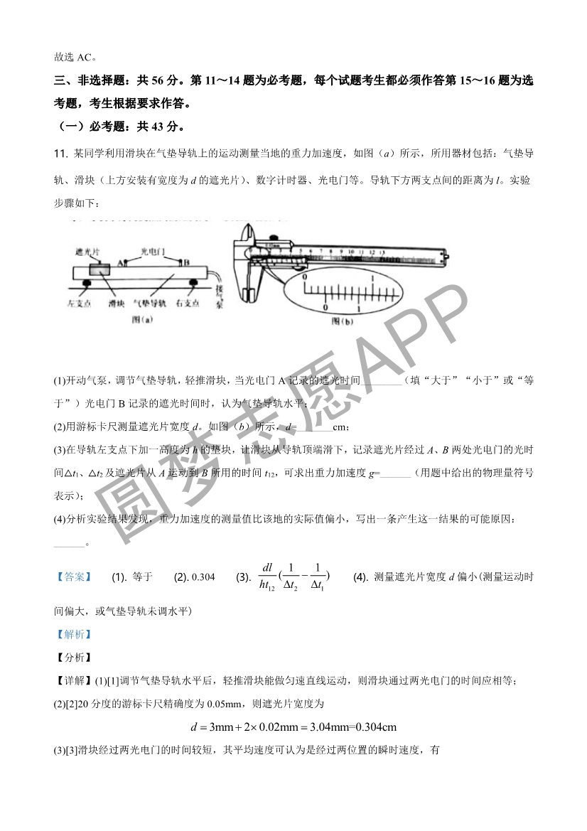 8、2021年新高考八省联考辽宁省物理试卷及答案