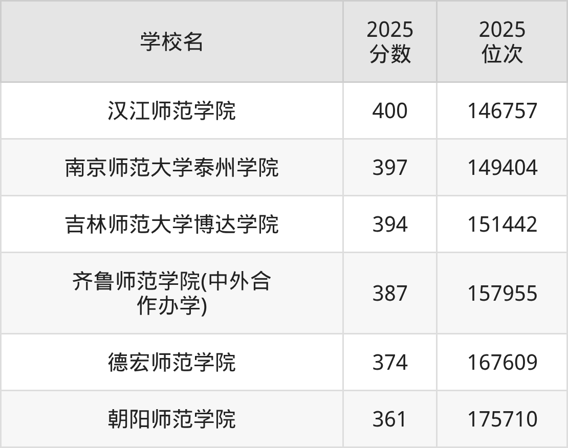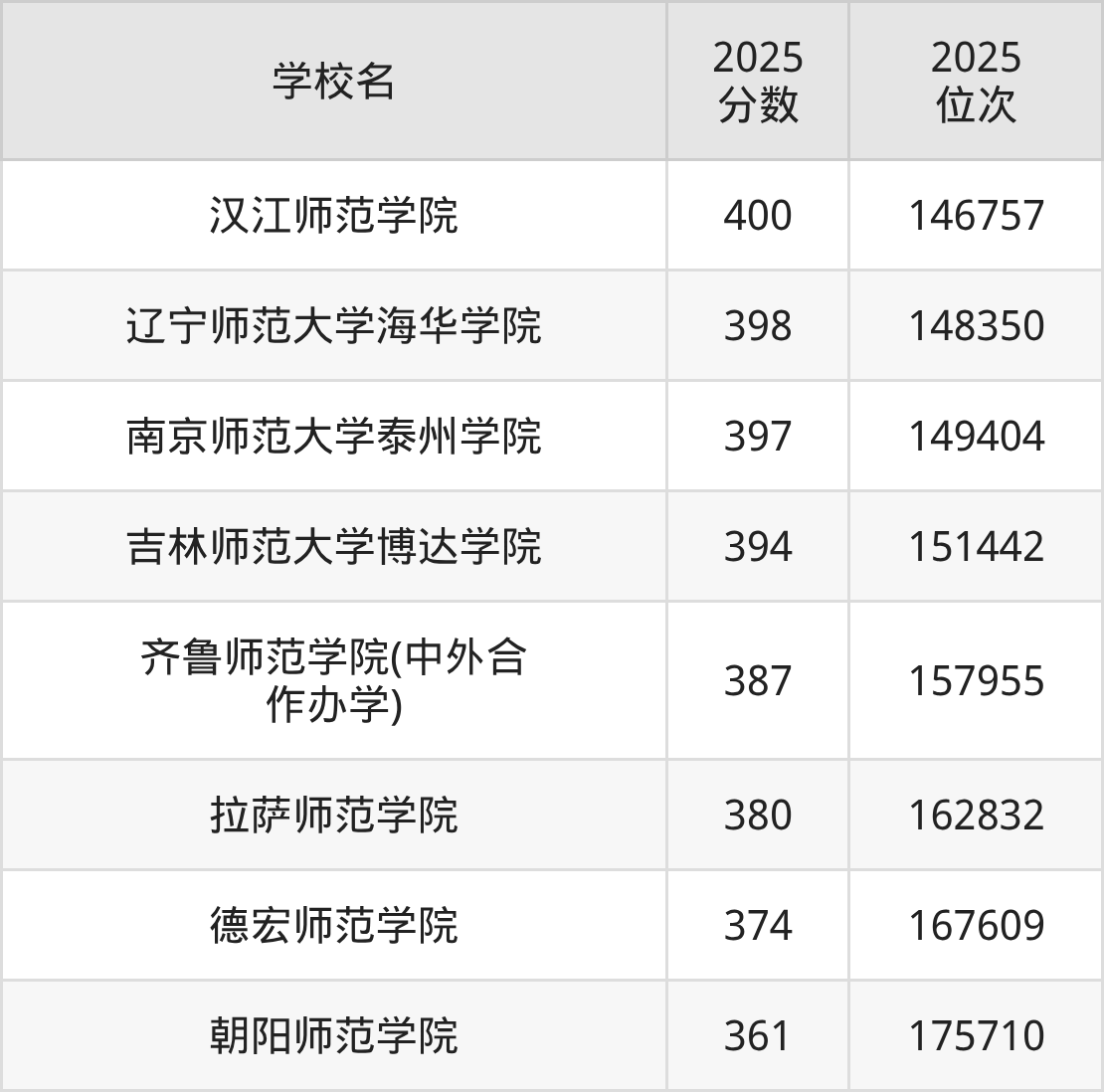 温馨提示:全国各省录取分数线不相同,本文以贵州省为例,为大家带来2025年录取分数线位于350到400分的二本师范大学名单汇总,并附上该分数段对应的位次排名区间,供查阅。