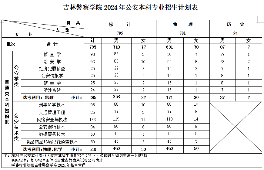 公安专业招生计划由公安专业中女生招收计划按照公安部、吉林省公安厅的有关规定,在专业计划中进行标注说明,未标注说明的只招收男生。普通专业无男女生比例要求。