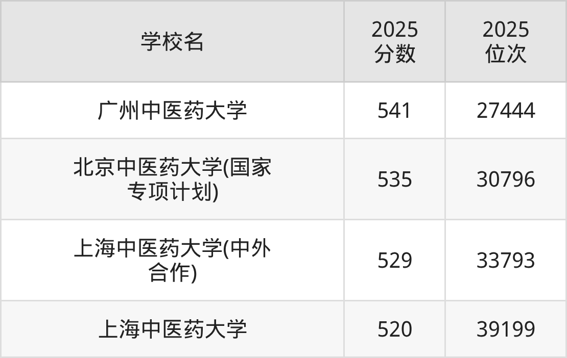 温馨提示:全国各省录取分数线不相同,本文以贵州省为例,为大家带来2025年录取分数线位于520到550分的中医药大学名单汇总,并附上该分数段对应的位次排名区间,供查阅。