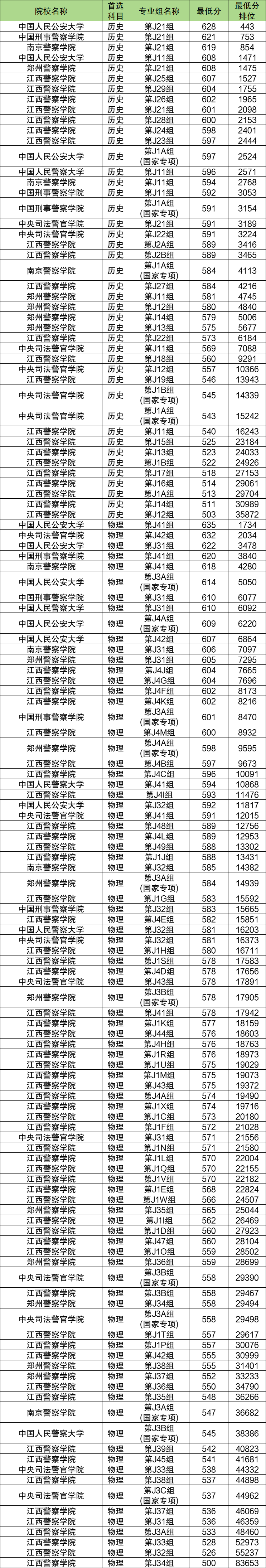 军、警类平行志愿中,江西提前批警校最低录取分数线:历史类503分、物理类500分,各院校最低分如下: