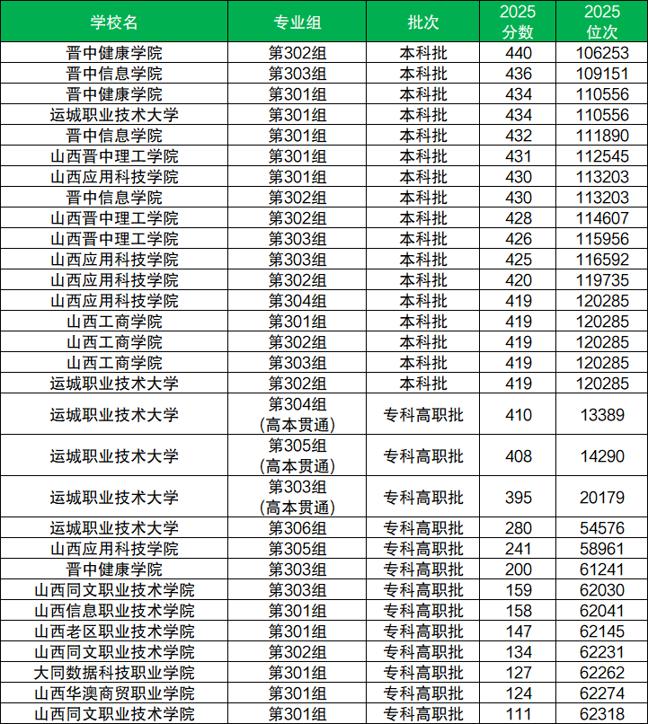 下面是2025山西公办大学录取分数线一览表(需滑动查阅):