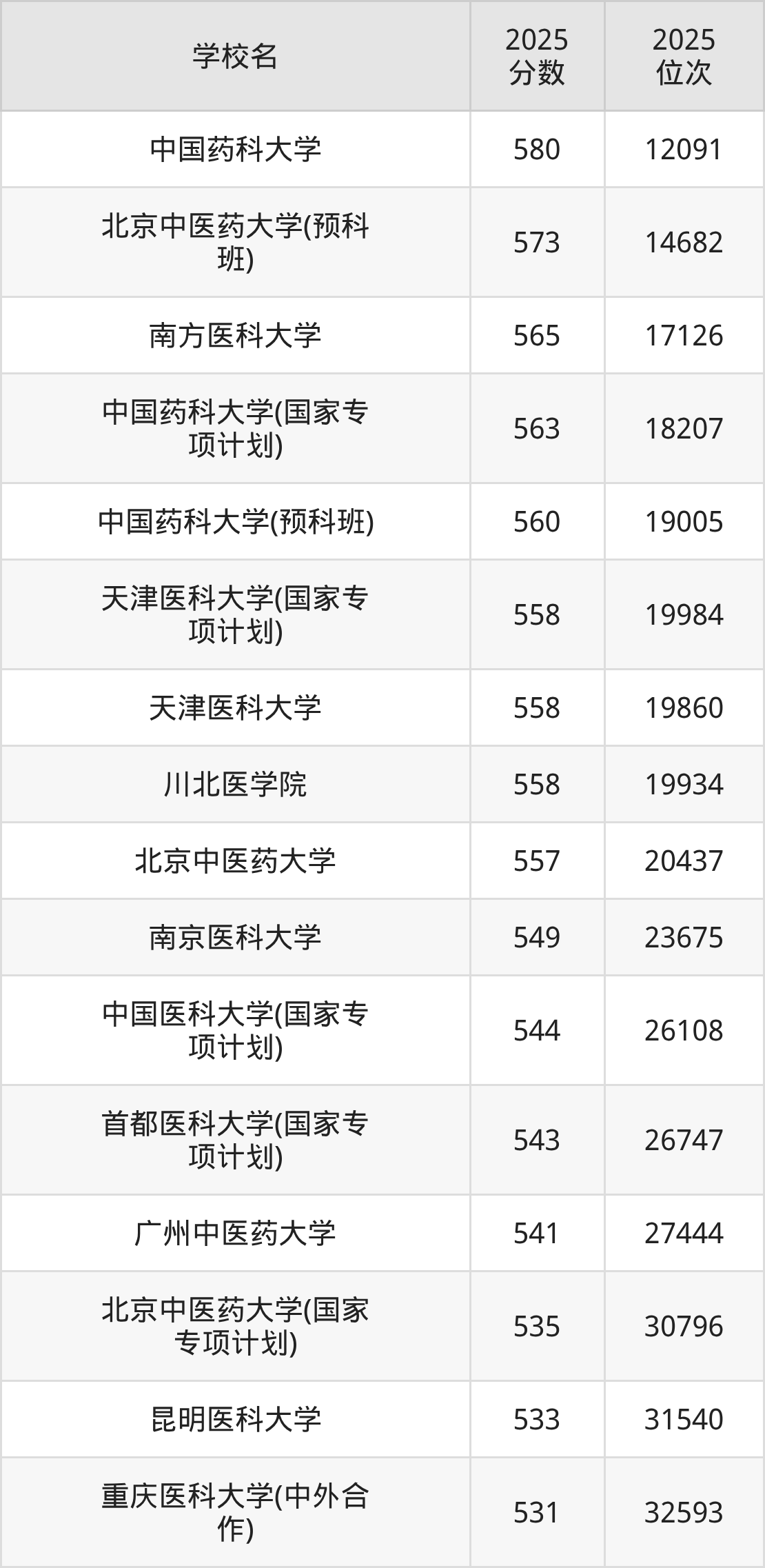 | 贵州中医药大学(地方 专项计划) | 545 | 9380 |