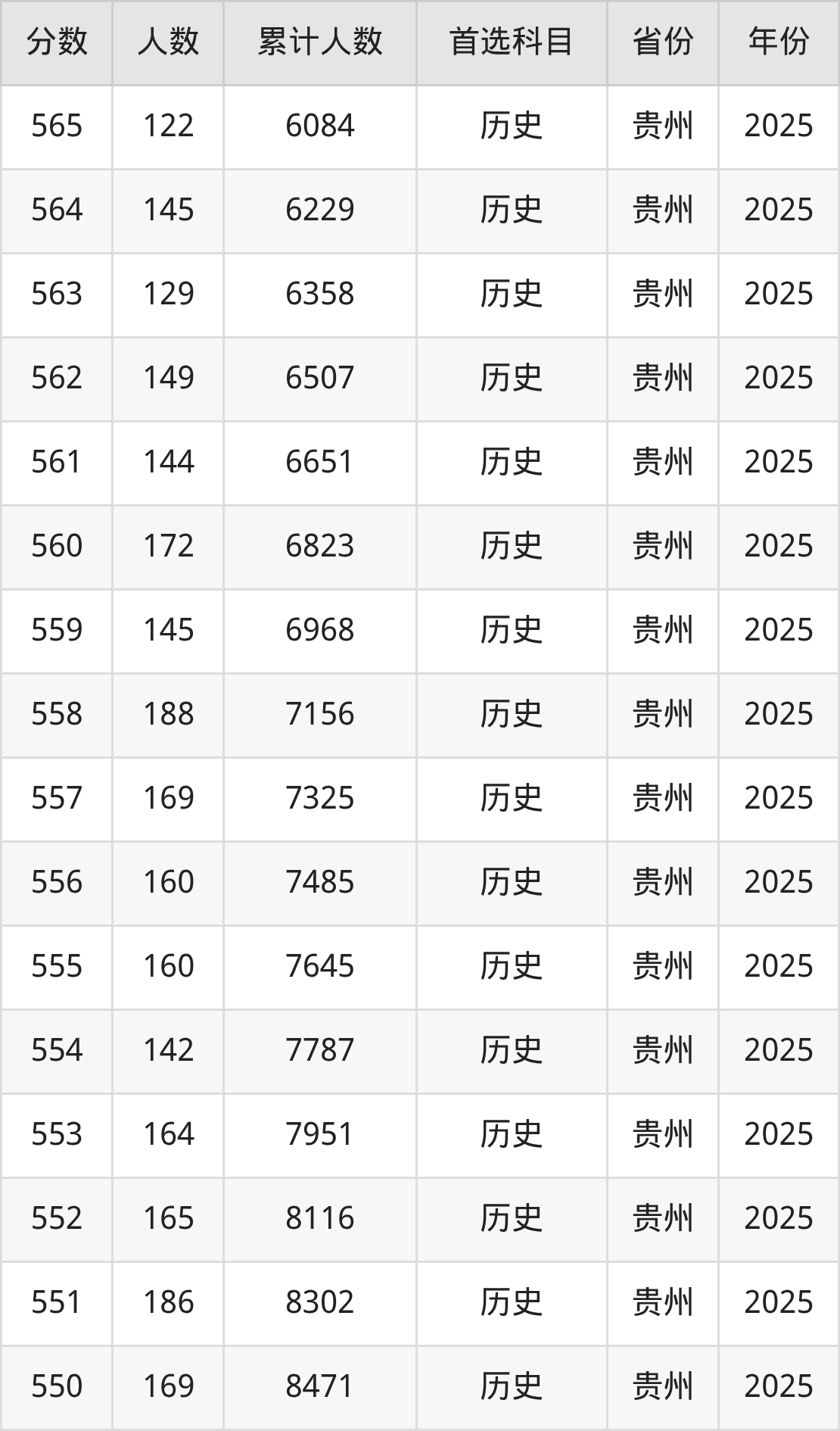 历史类530到580分的位次排名:4010名~12768名