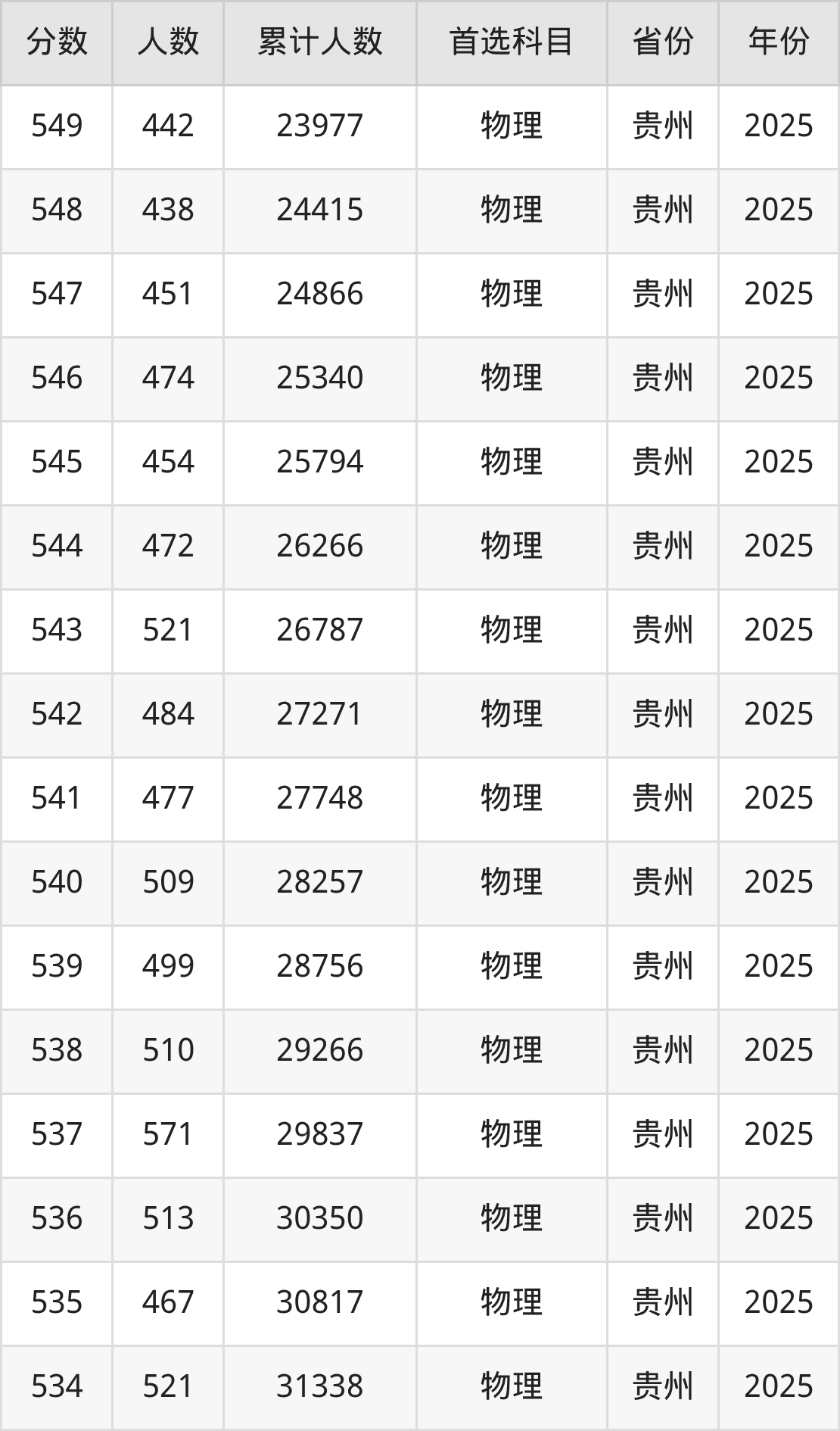 物理类530到580分的位次排名:12068名~33494名