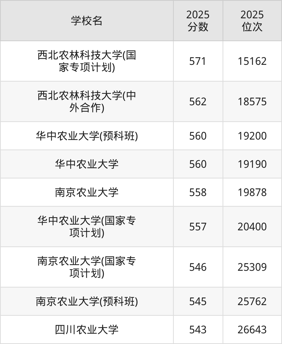 | 学校名 | 2025 分数 | 2025 位次 |