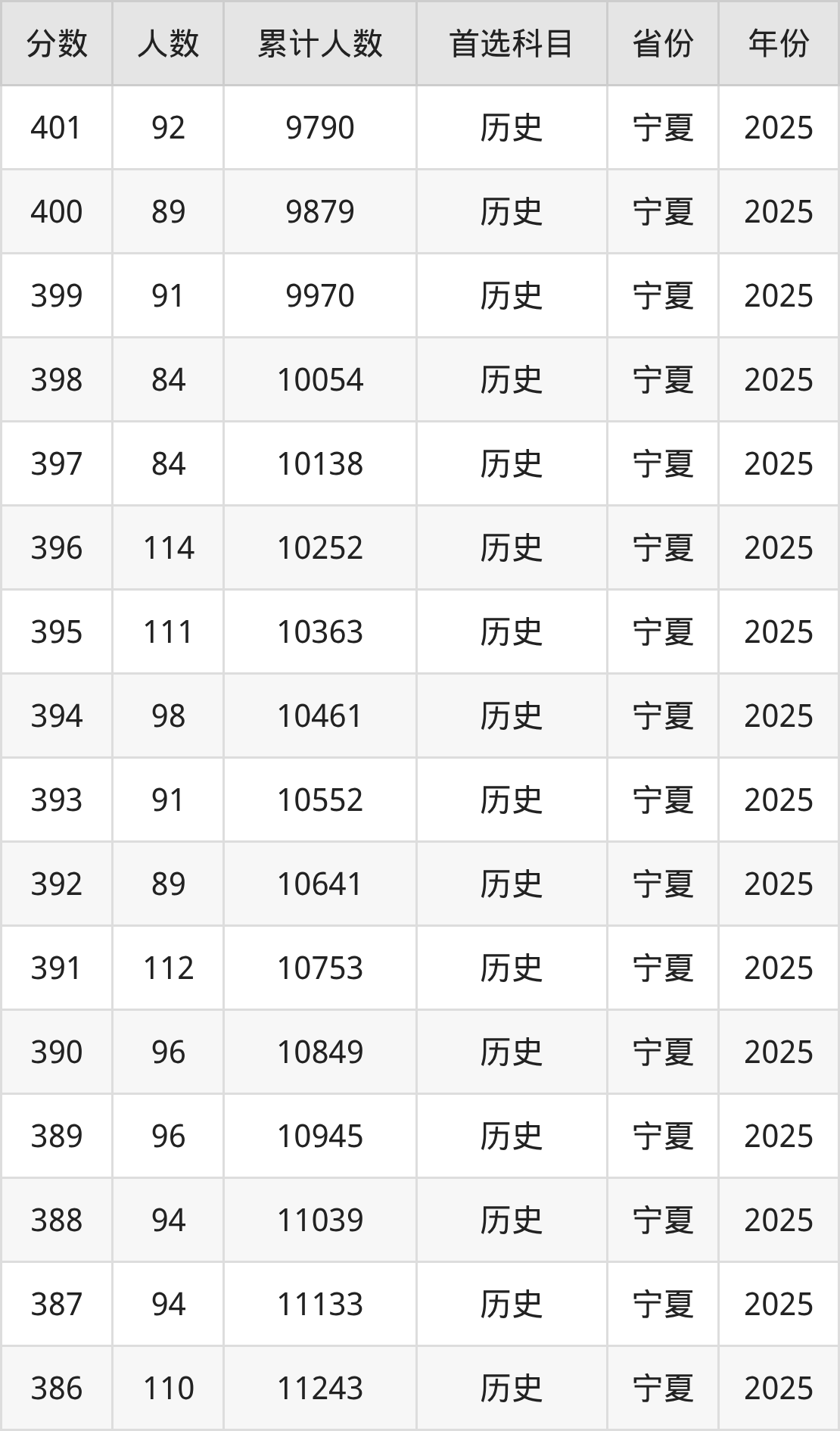 录取分数线的波动较大,下面圆梦小编为大家带来了2025年350到400分对应的位次排名区间,建议2026年位于该位次范围内的考生参考上文所整理的学校(本文仅针对宁夏回族自治区)。
