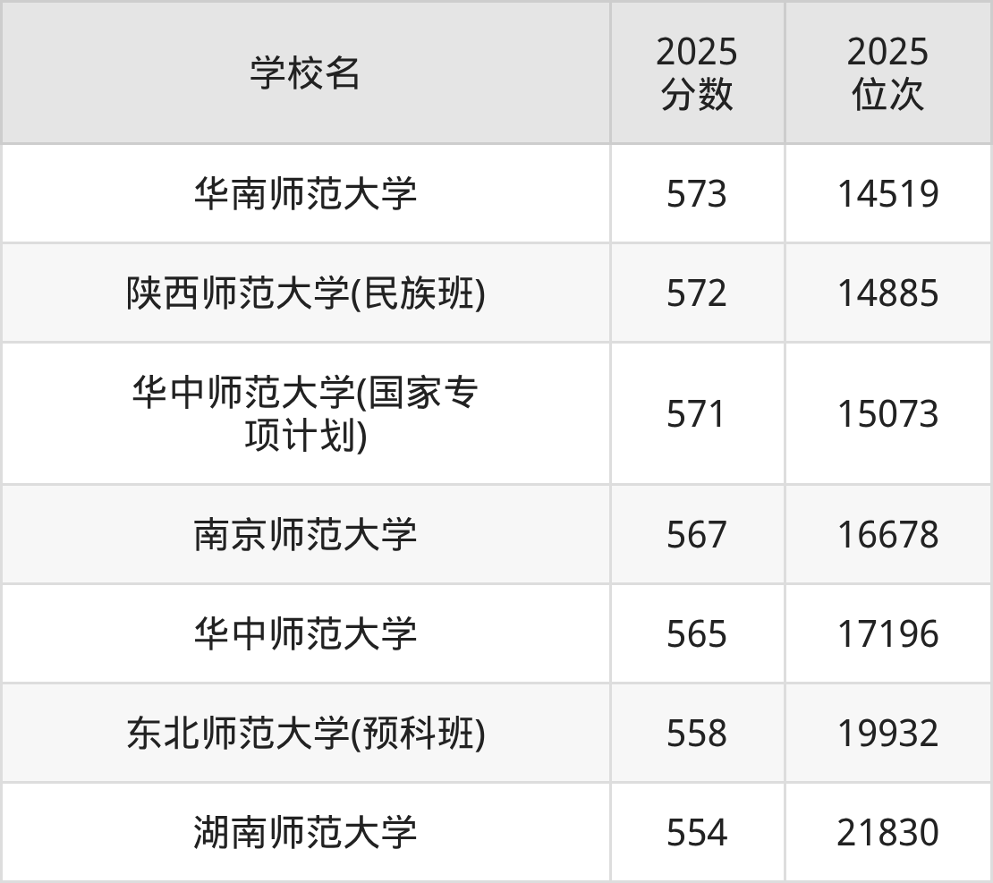 温馨提示:全国各省录取分数线不相同,本文以贵州省为例,为大家带来2025年录取分数线位于550到580分的师范大学名单汇总,并附上该分数段对应的位次排名区间,供查阅。