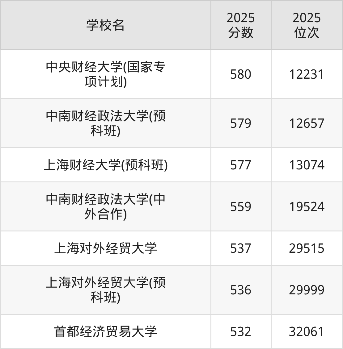 对于首选物理的同学来说,530到580分能上的财经大学中比较好的有首都经济贸易大学(532分)、上海对外经贸大学(537分),这些大学均位居全国200强以内。