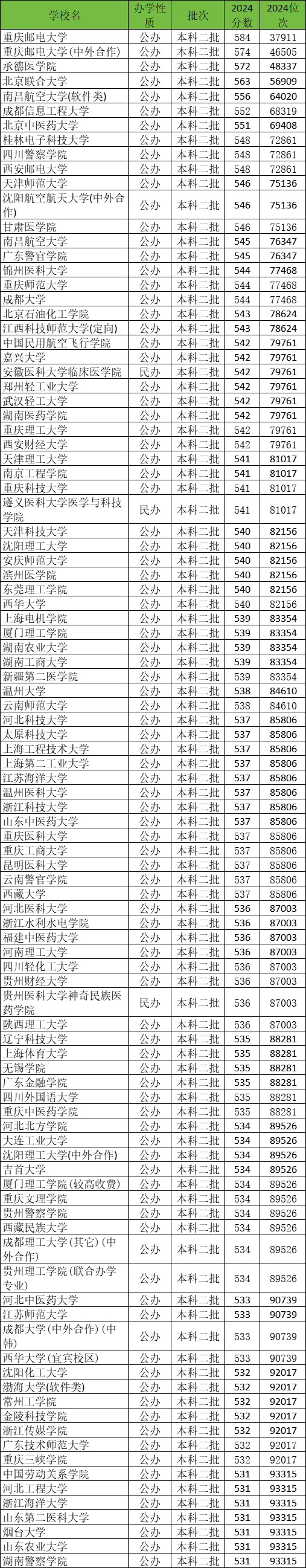 二、2024年二本大学录取分数线