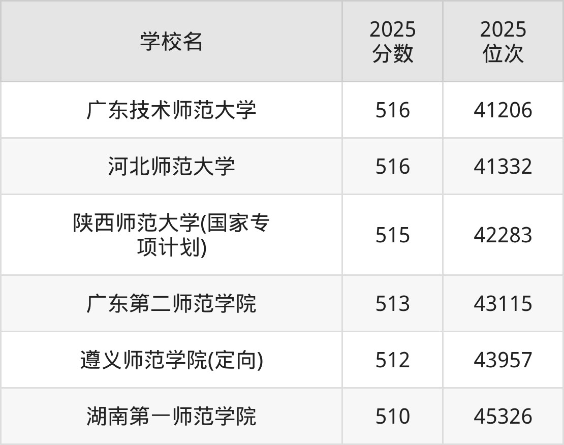 温馨提示:全国各省录取分数线不相同,本文以贵州省为例,为大家带来2025年录取分数线位于510到520分的师范大学名单汇总,并附上该分数段对应的位次排名区间,供查阅。