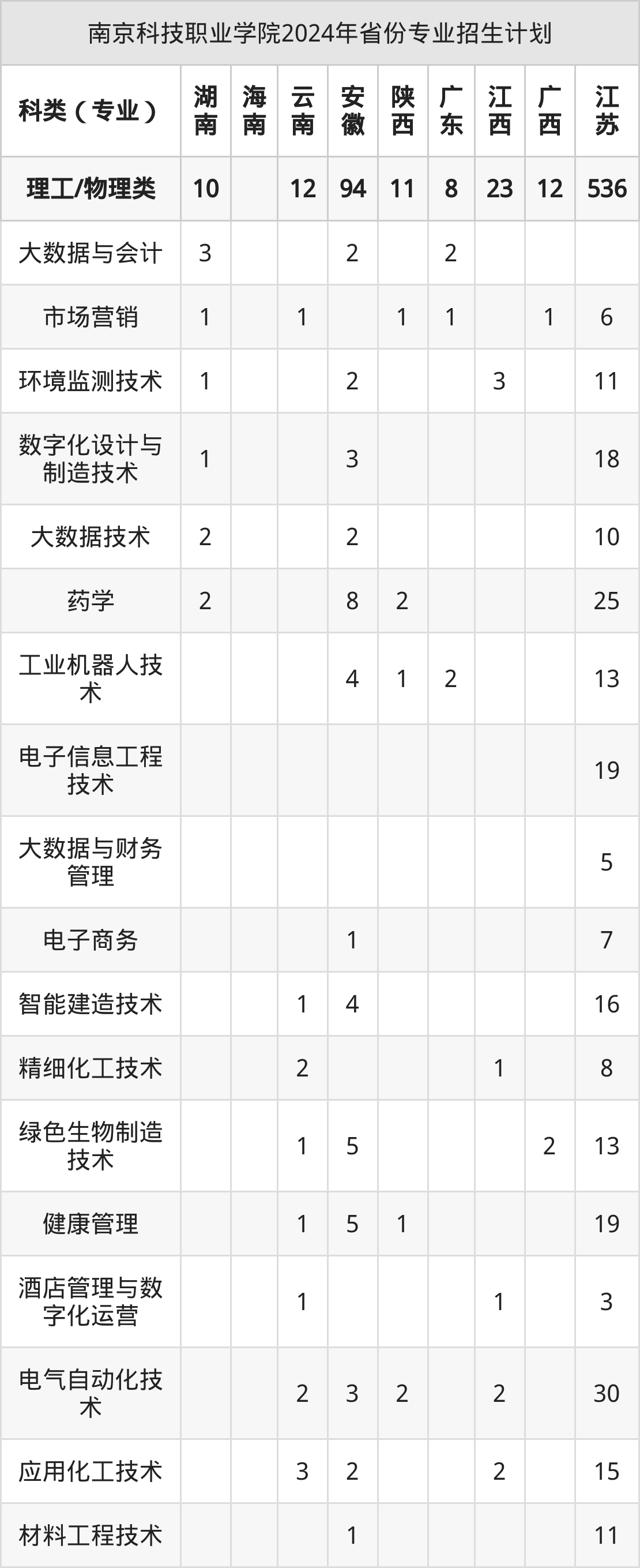 2025年南京科技职业学院专科招生计划待公布,下面附上2024年数据,暂供参考: