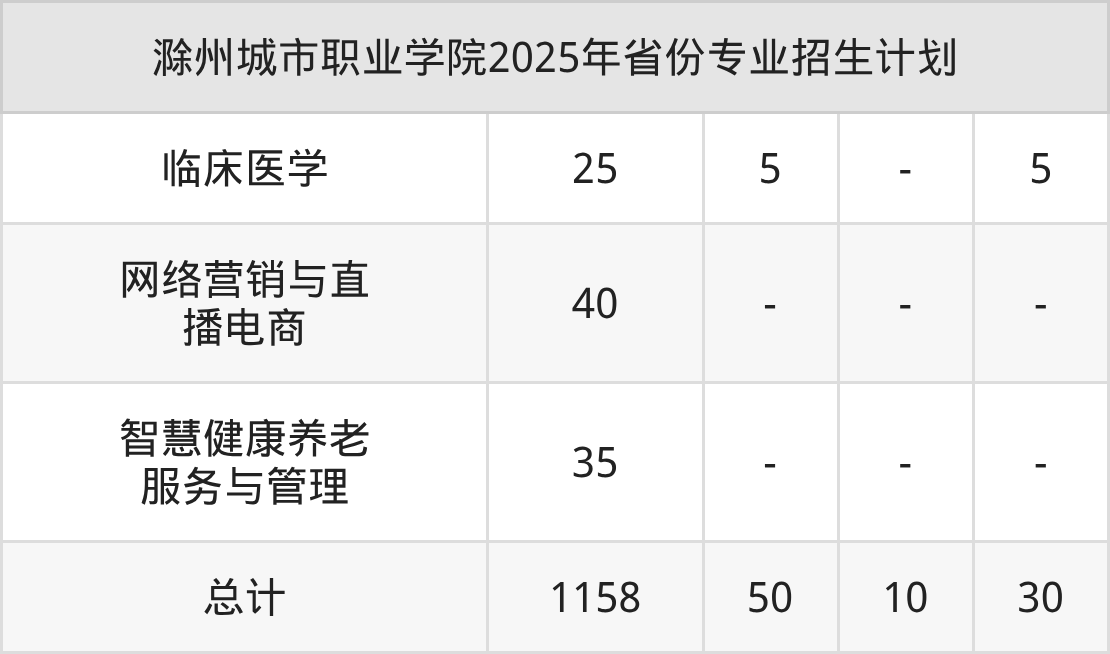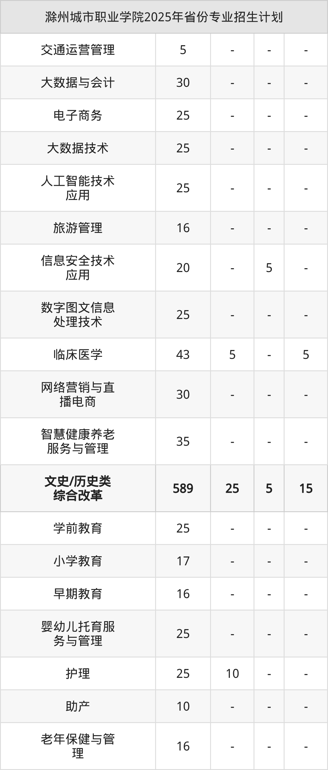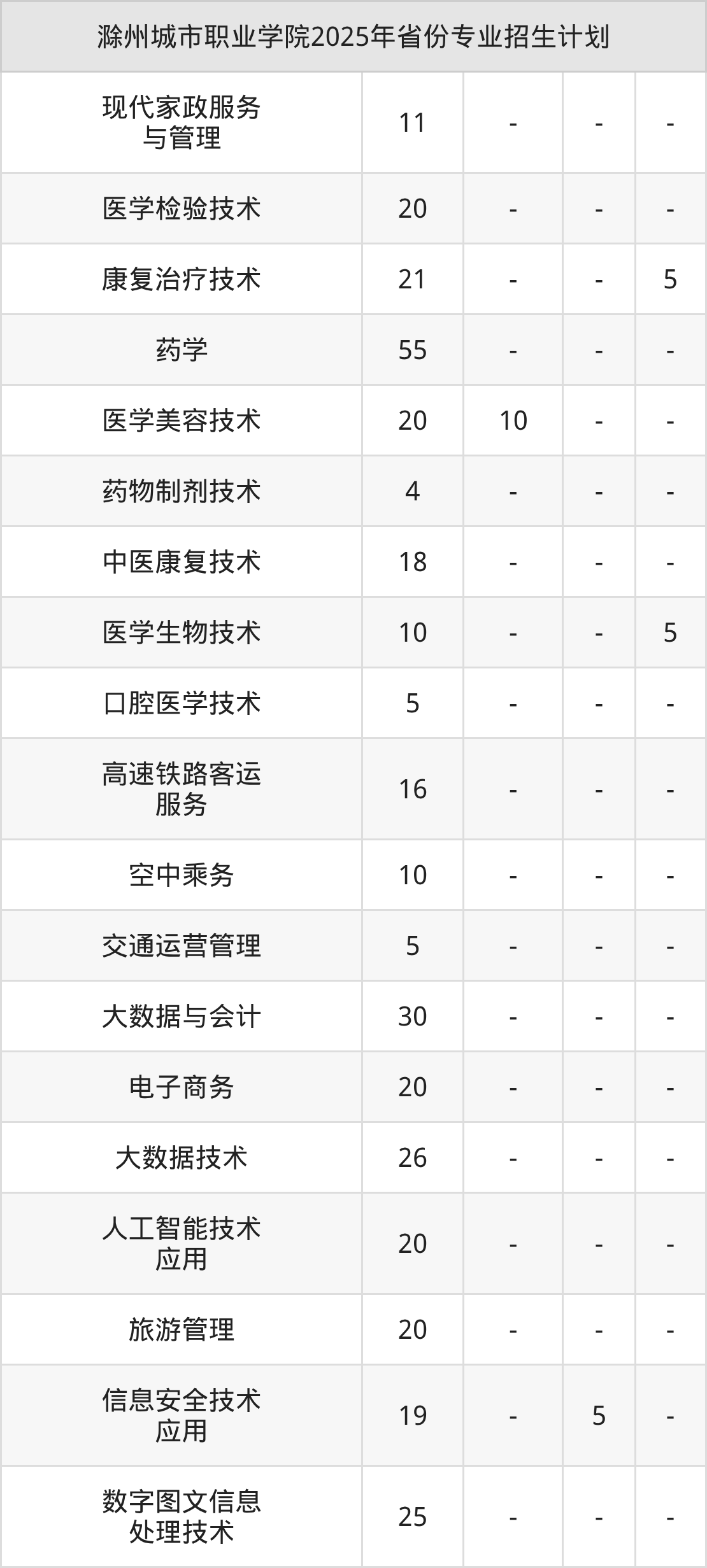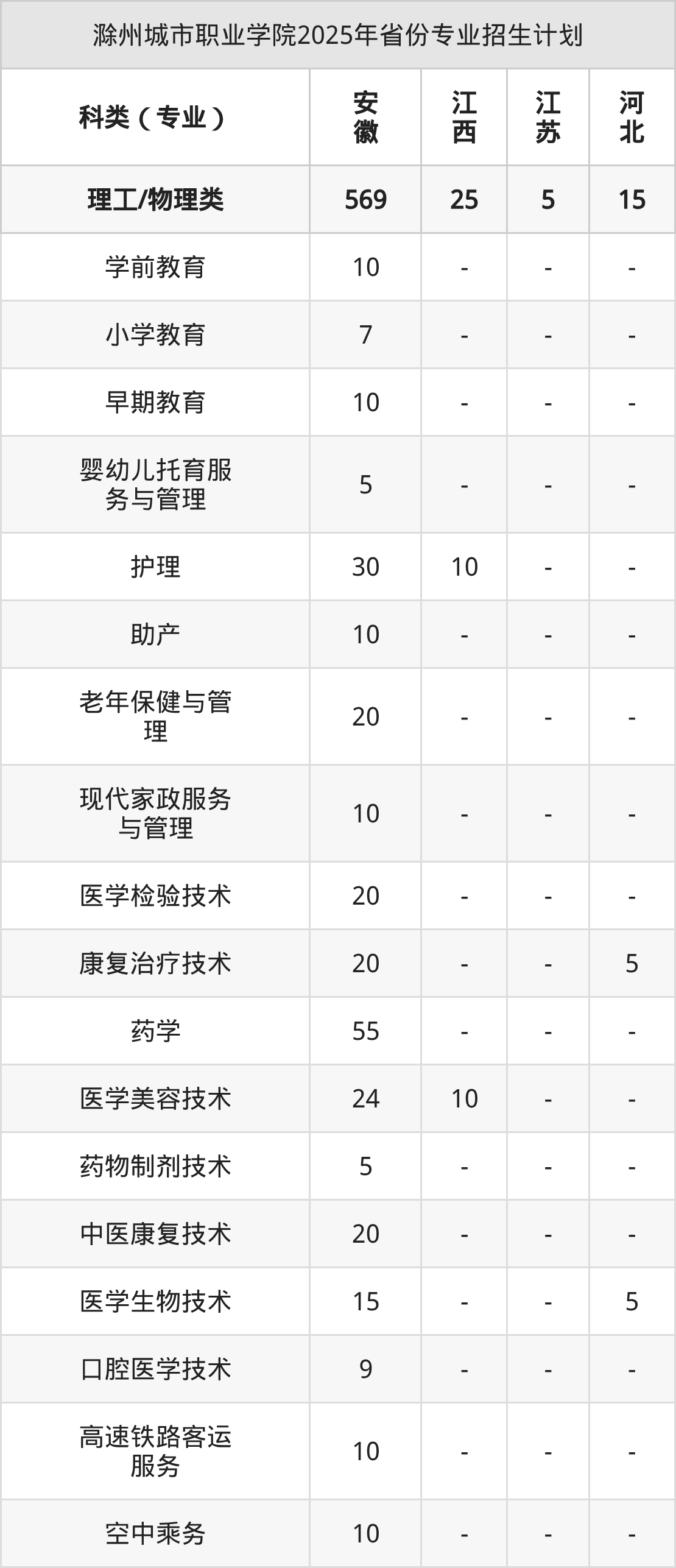 2026年滁州城市职业学院专科招生计划待公布,下面附上2025年数据,暂供参考: