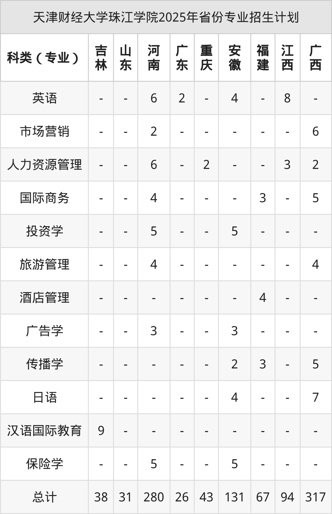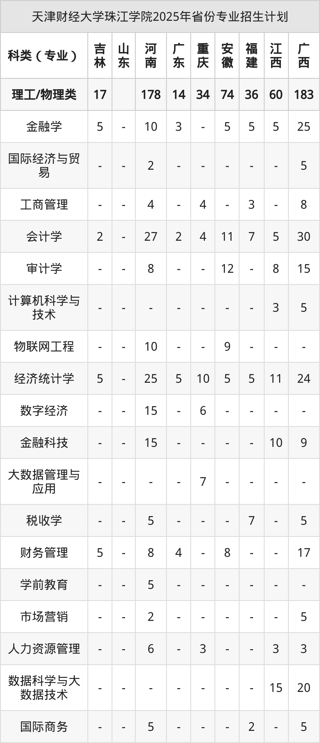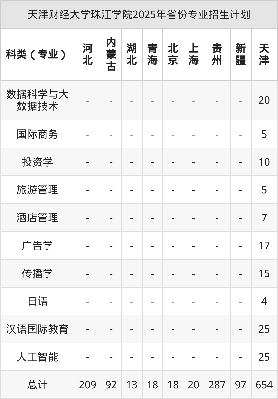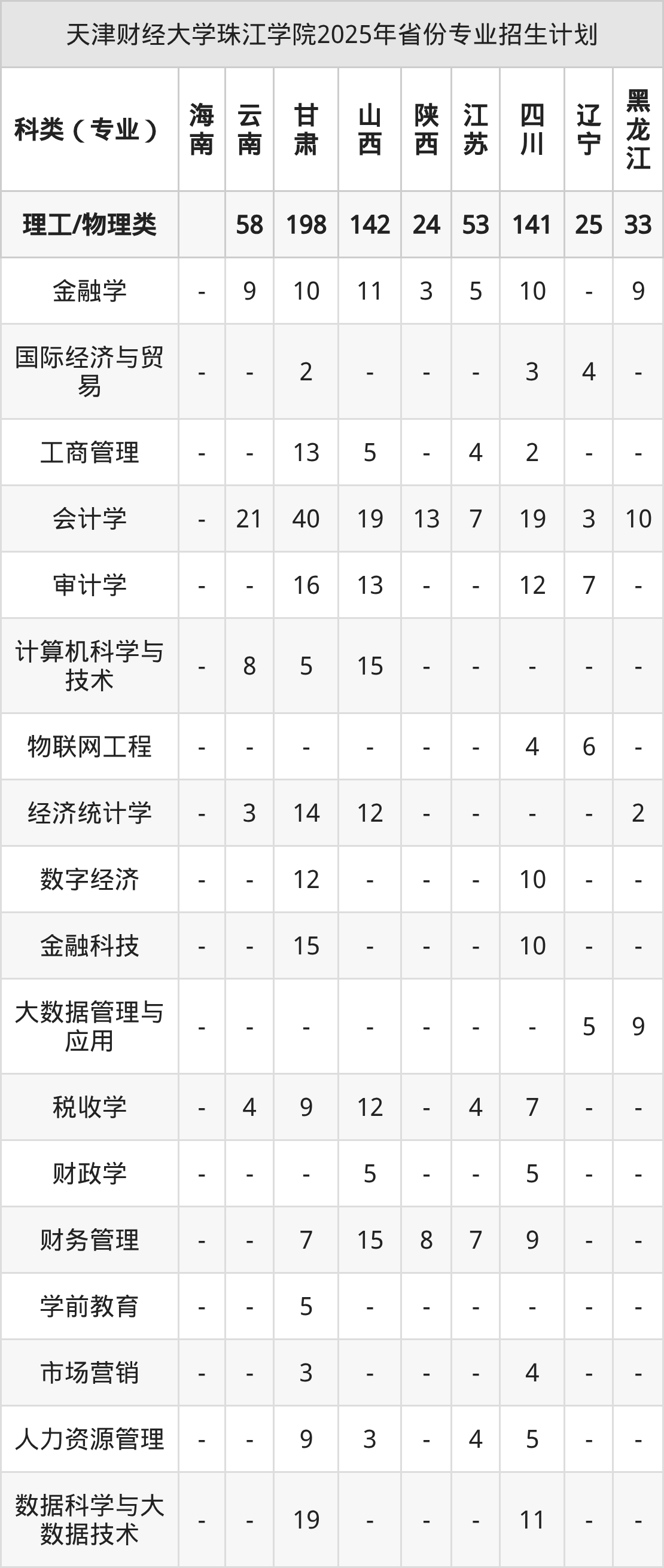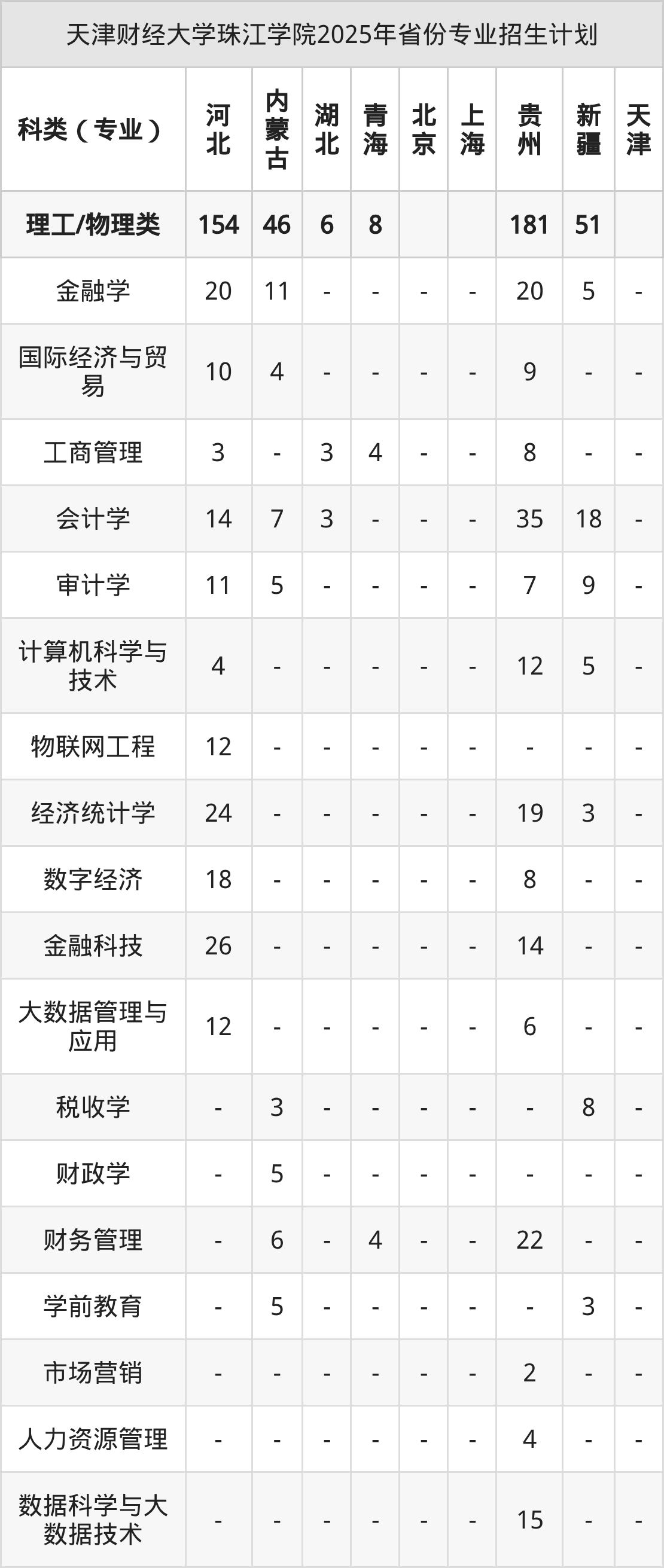 2026年天津财经大学珠江学院本科招生计划待公布,下面附上2025年数据,暂供参考: